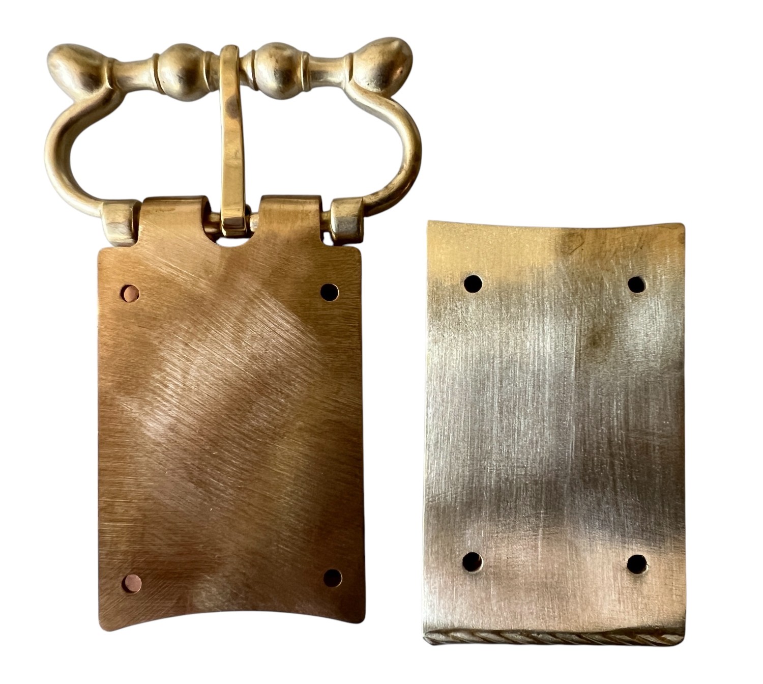 These are simply amazing, and they've inspired a whole line of belt components we've made since. While of them fit the 1" belt width of the original, we've also done some for the popular 1.5" width - and this is that variation, available as the buckle only, the buckle and anchor plate for attaching it to the leather (with four rivets), or with the buckle, anchor plate and a matching tip.