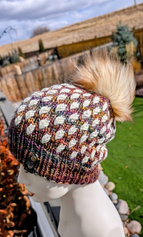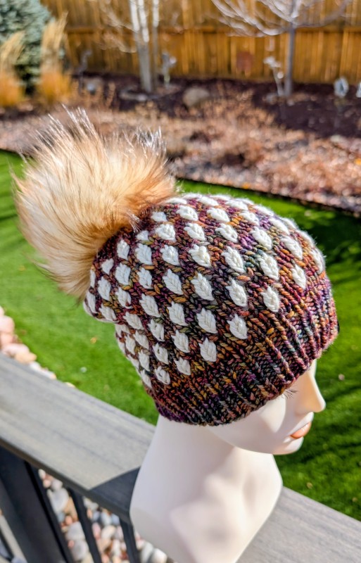 This A New Leaf Beanie is handknitted in chunky 100% Merino wool, with a removable faux fur pompom.