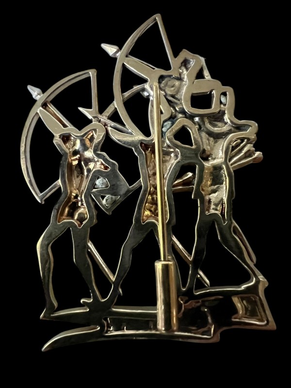 Made from high-detail bearing jewelers' brass, featuring a solid pin on the back side.