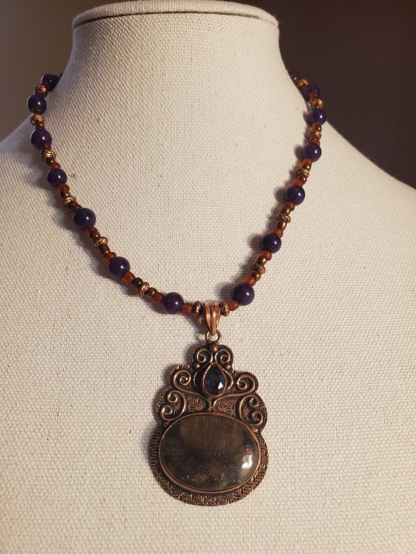 Amethyst Agate in Copper Necklace, One of a Kind, 18" long