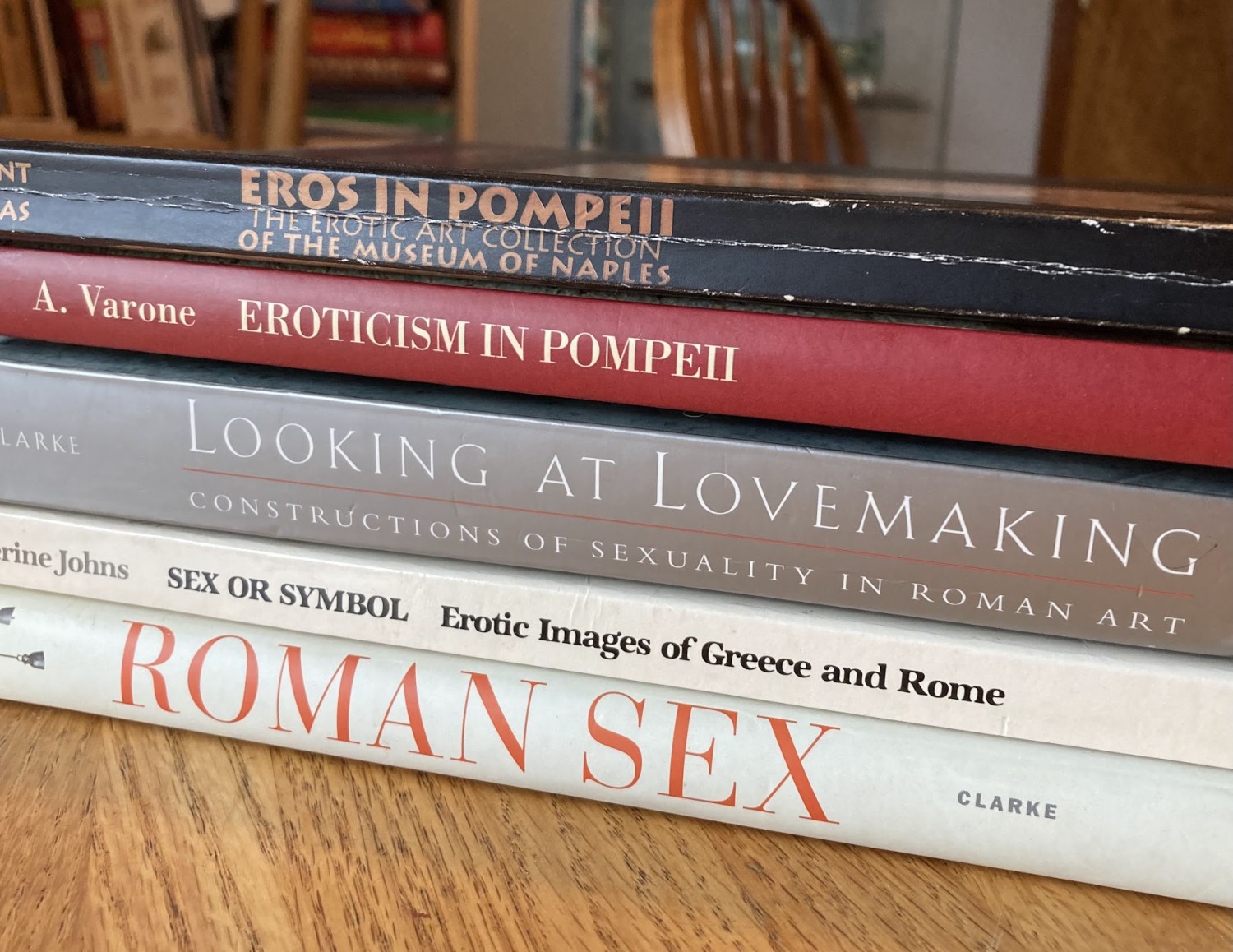 I do Ancient Roman living history / reenactment, and once wrote a 31 page research paper on sexual imagery of the period. I'm including a small stack of the books I referenced in the photos.