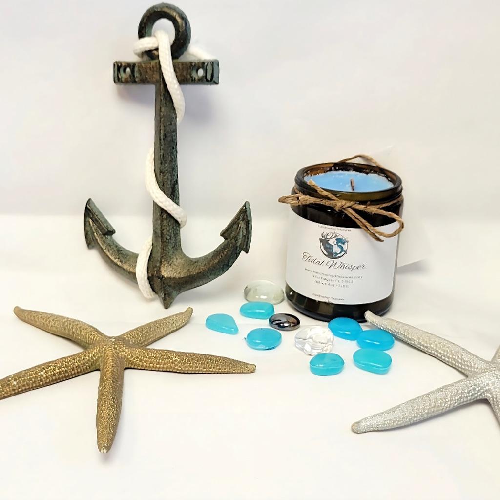 OR Transport your senses to the shoreline. Part of the wellness-focused Apothecary Series, Tidal Whisper is crafted to bring the renewing energy of the ocean into your home. This candle features a 'Hidden' deep blue and white mica reveal; as the candle burns, the depths of the ocean are uncovered in a shimmering swirl. Perfect for evening wind-downs and self-care rituals. Notes: Soft Coastal Breeze, Salt-Washed Shores, & Marine Ozone.