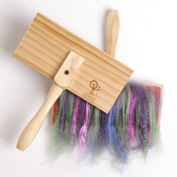 This product does not ship to the USA only Canada Any shipping overages will be refunded to you. Pls go to theshepherdspillow.com for more Ashford products and contact me before ordering. Comes in Small and large sizes Used in pairs to card and prepare your fibres in the traditional way, producing small rolags for spinning. 72 ppsi or 108 ppsi Portable. Lightweight. Quick to assemble. Comfortable round handle. Large carding area. Curved bat. Card cloth has wire teeth with a special protective coating and a flexible rubber backing for long life. Wide hand carders are made for cotton, angora, and other fine fibers. Flick carder 72 ppsi This is your first carder for preparing individual staples of fleece wool. A flick carder is a very handy little tool which will open up staples quickly and efficiently for spinning or preparing staples for drum carding. It can be used with washed or unwashed fibre. The flick carder can also be used for cleaning the drum carder.
