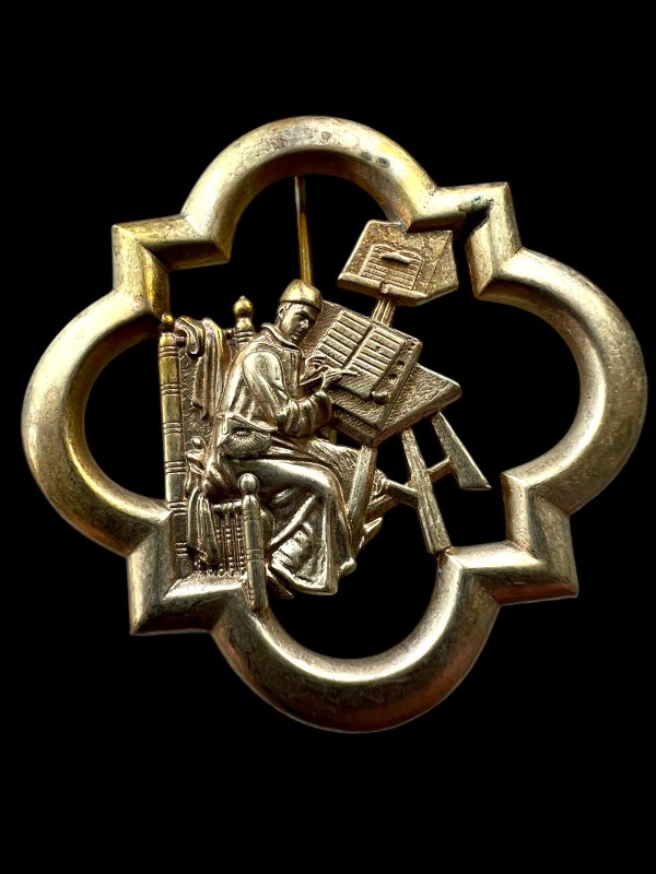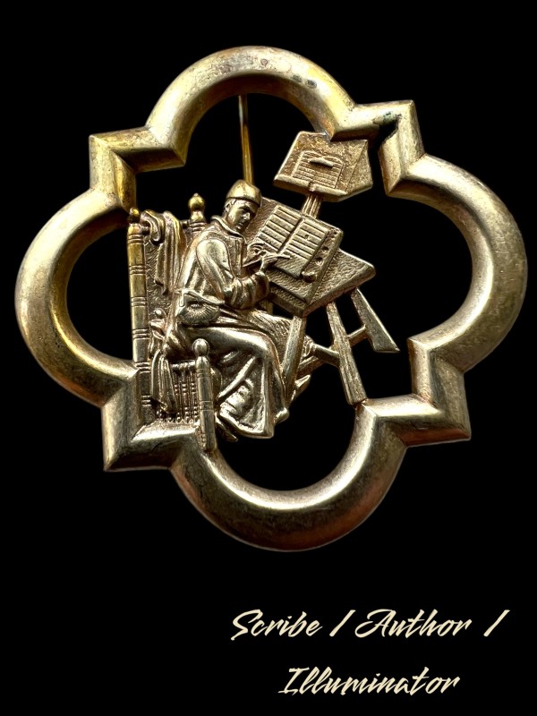 Medieval clerk / scribe / illuminator set in a bold quatrefoil, perfect also for authors or artists!