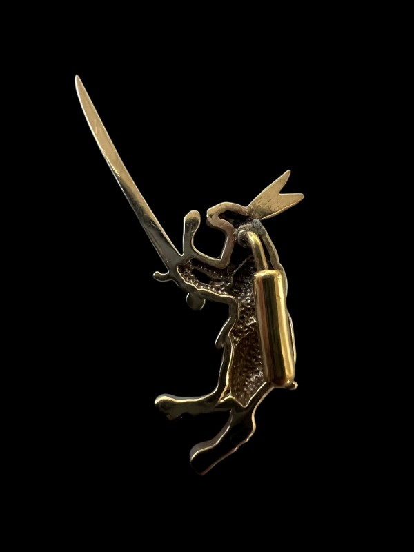 Made from high-detail bearing jewelers' brass, featuring a solid pin on the back side.