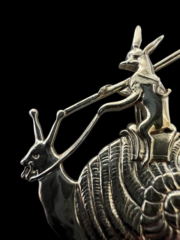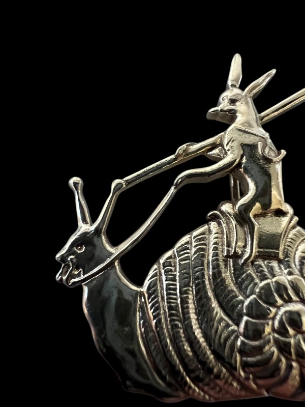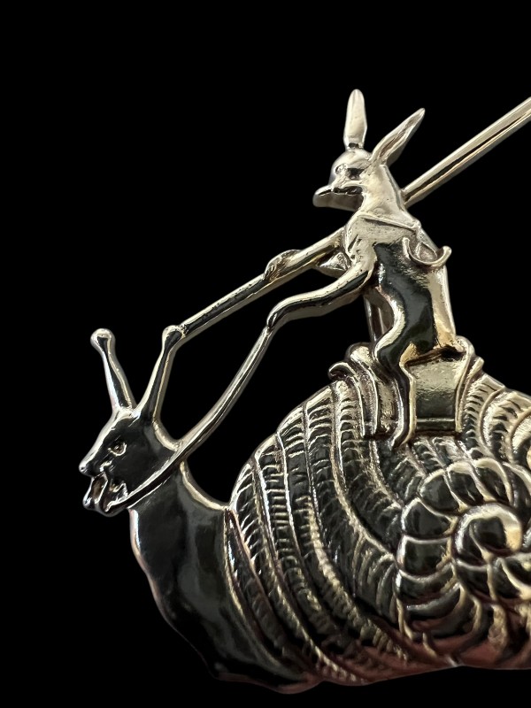 So popular is this bunny that we have him also as a sterling pendant as well as earrings, and we have a hand-painted version of the pin which is particularly beautiful.
