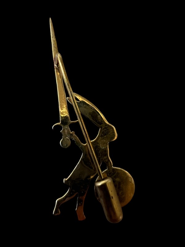 Made from high-detail bearing jewelers' brass, featuring a solid pin on the back side.
