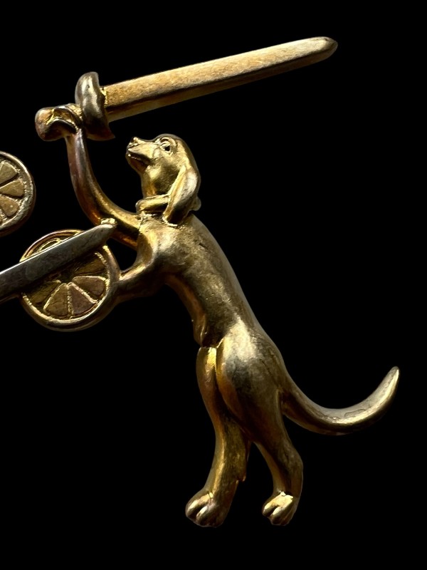 The pin is over 2” long and about 1 3/4” tall, and it’s made of high-detail jeweler’s brass.