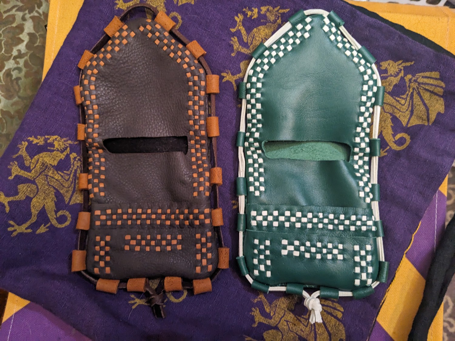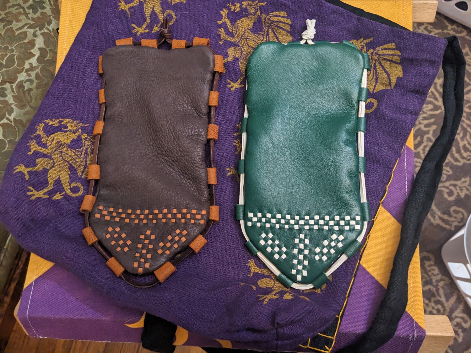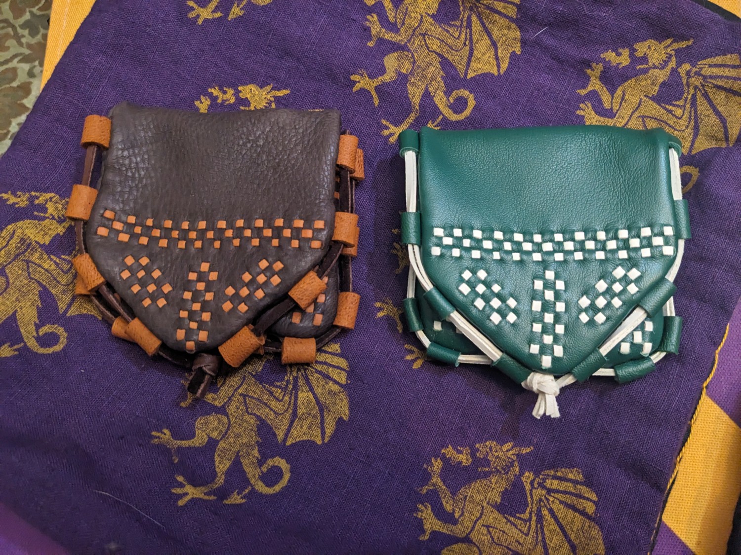 Birka wallets from Birka Grave 750. This wallet is a lovely little object that is just perfect for Viking reenactors, merchants and more. The pockets hold a modern credit card perfectly despite being designed for hacksilver and trade weights. The roomy interior can be reached through a horizontal slot and makes an excellent coin pouch.