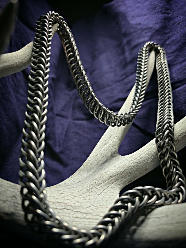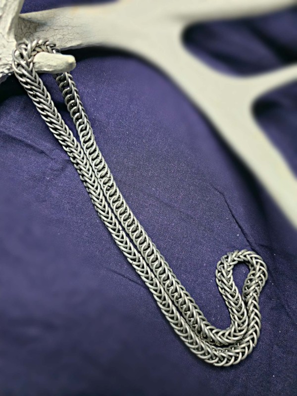 This is a very smooth, slinky chain done in the Persian 4-1 style. Made of aluminum, this simple stylish chain will sure to be noticed when added to any outfit.