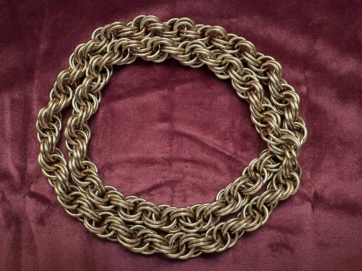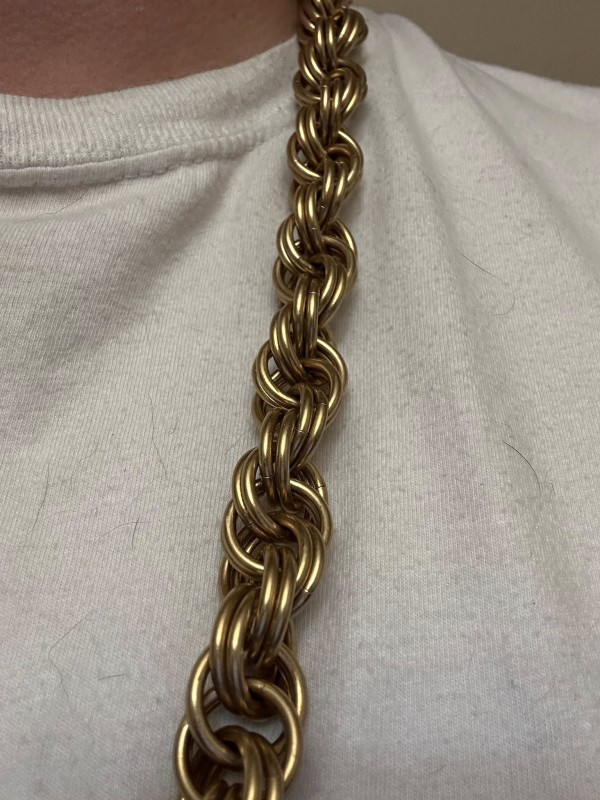 This hefty chain is made of 14 gauge brass, and is both impactful but tasteful.
