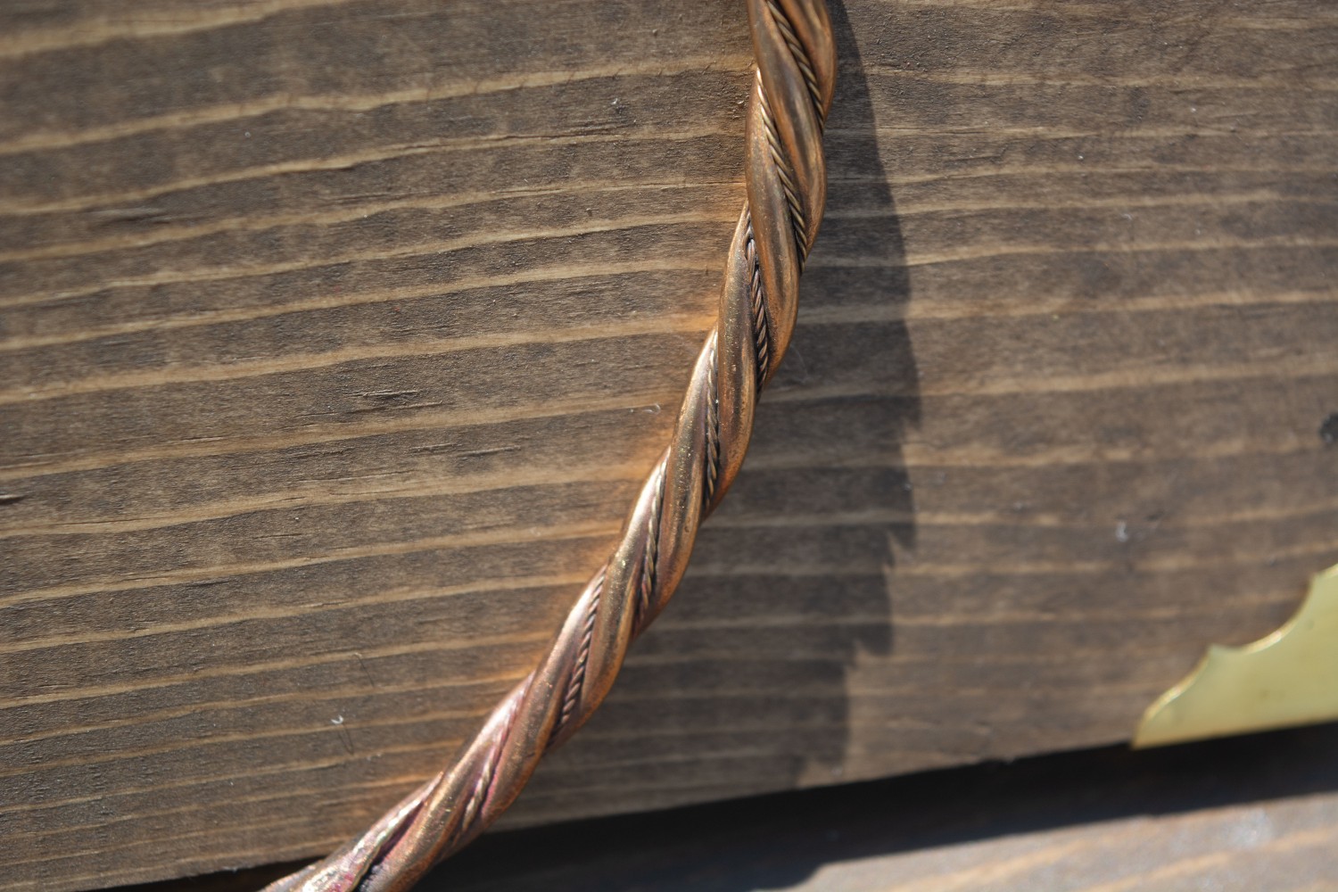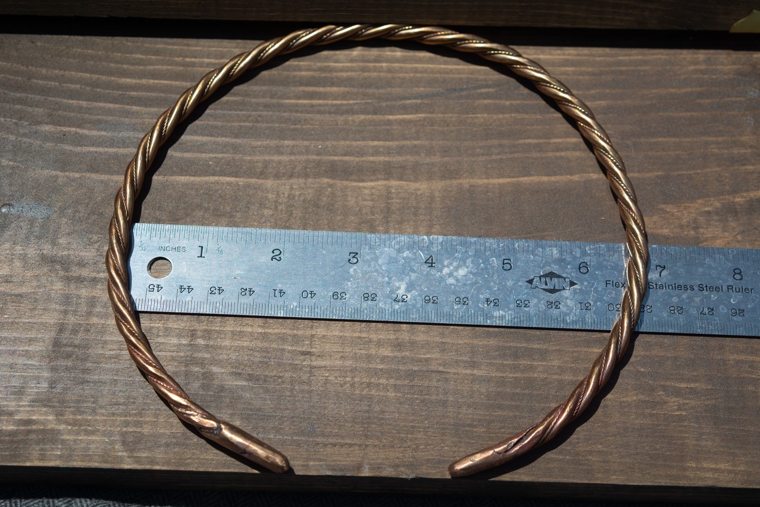 This handmade torc is made from a set of 3 Bronze 12 Gauge wires with 3 sets of triple 26 gauge bronze wire twisted, then laid as accents.