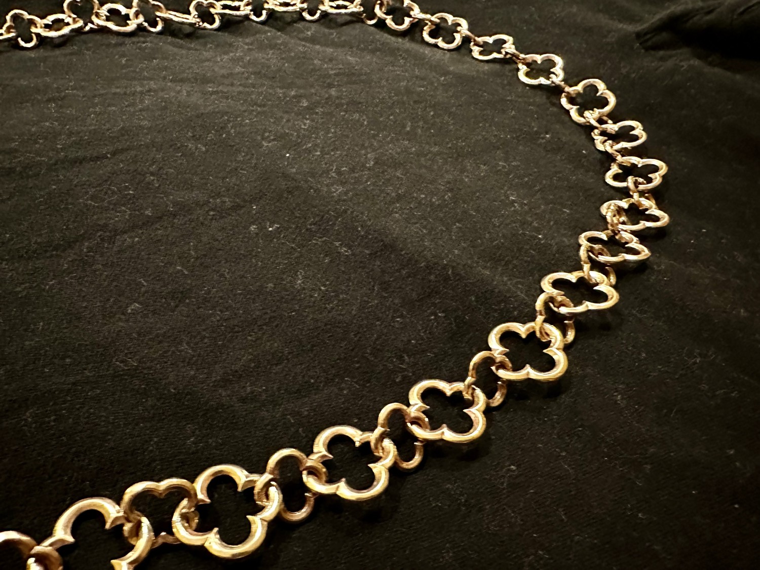 Delicate but strong, light weight, individually cast bronze Quatrafoils. The chain is soldered and VERY strong.