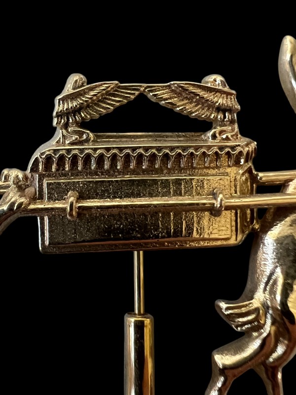 Made from high-detail bearing jewelers' brass, featuring a solid pin on the back side.