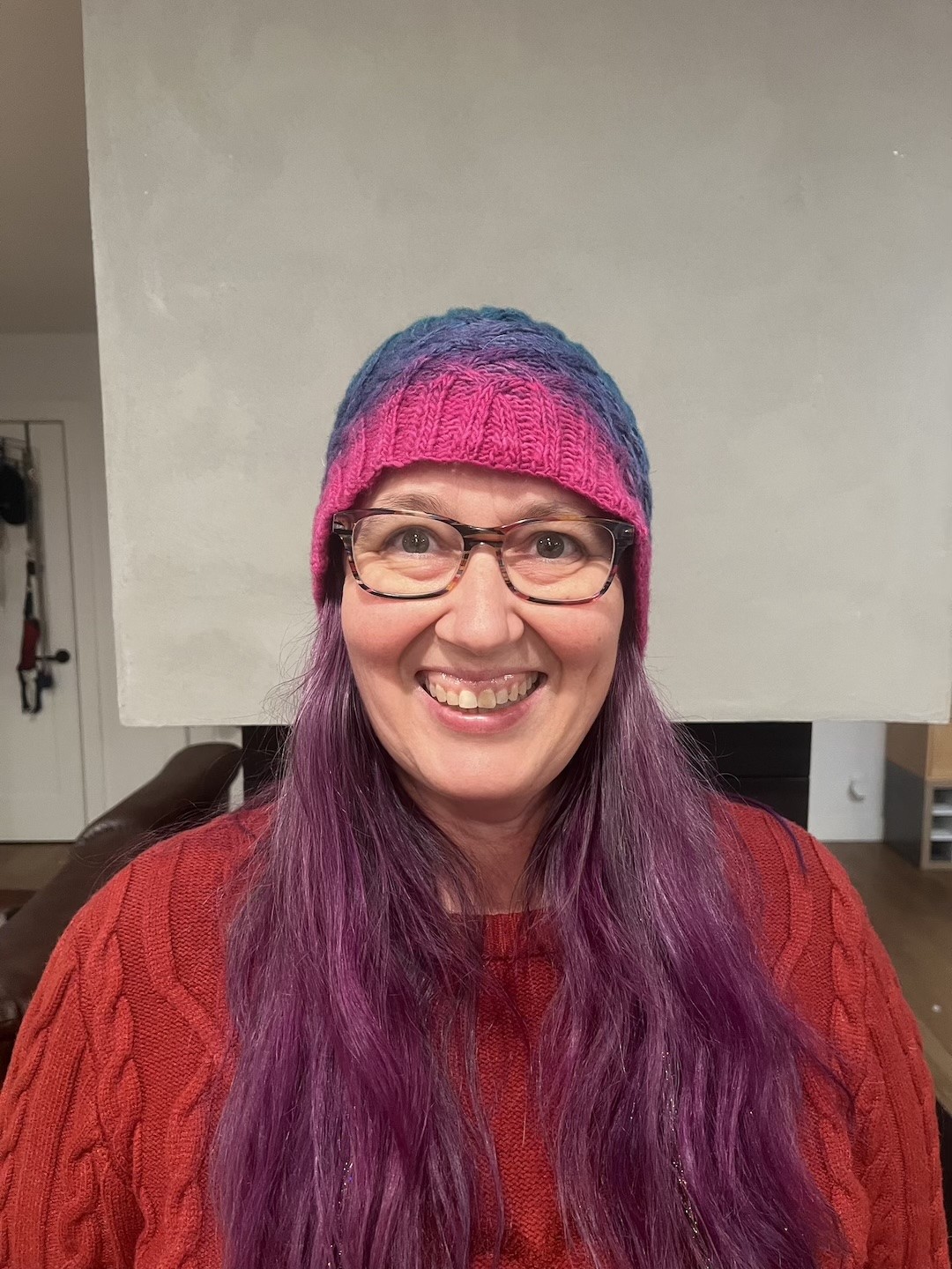Knitted in 100% Wool, this Hat measures 11 in x 8 in and has a circumference of 22 in un-stretched.