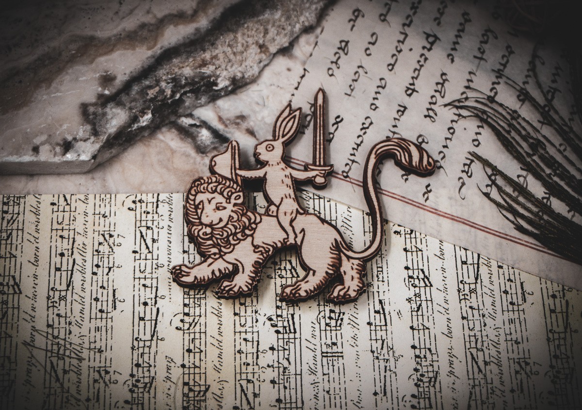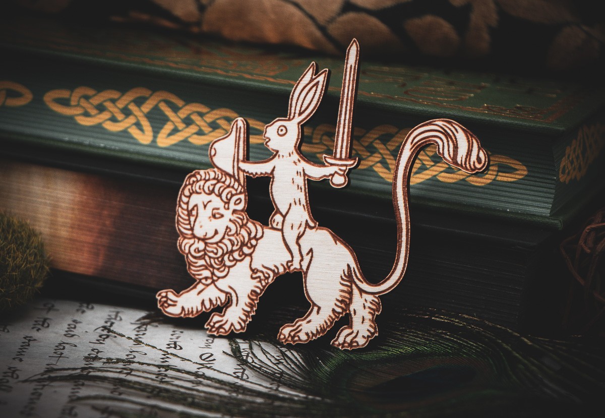 Drawn from the irreverent marginalia of a 14th-century manuscript, this design captures the medieval humor of subversion. In a world of rigid hierarchies, the monks delighted in sketching the impossible: a rabbit—usually the symbol of cowardice—fearlessly astride a lion, the king of the forest. This "Cavalier" isn't just a magnet; it’s a tiny masterpiece of historical satire, reminding us that even the smallest among us can command greatness.