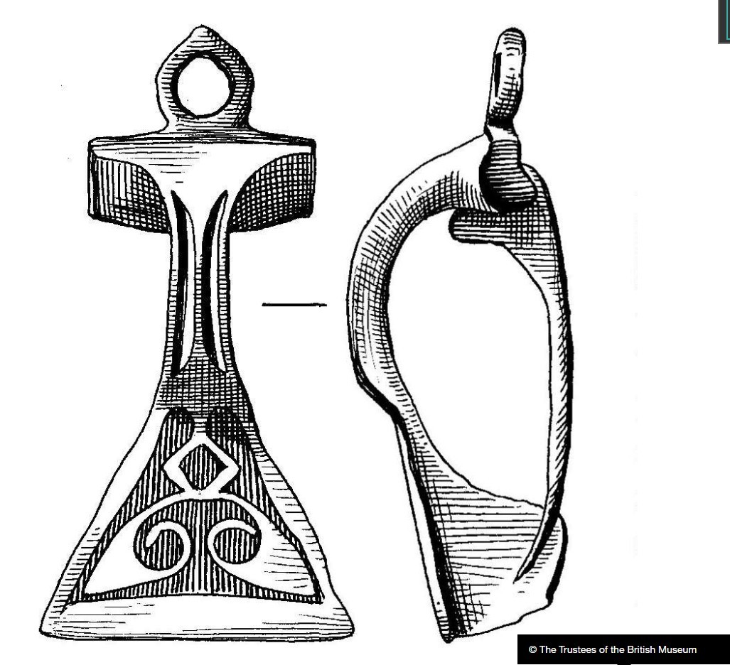 Description: Celtic fan-tail brooch from the Romano-British period (45-410AD) with heavy, stainless steel pin. See pictures of original from the British Museum above.