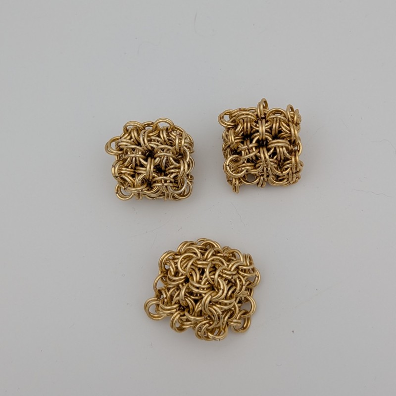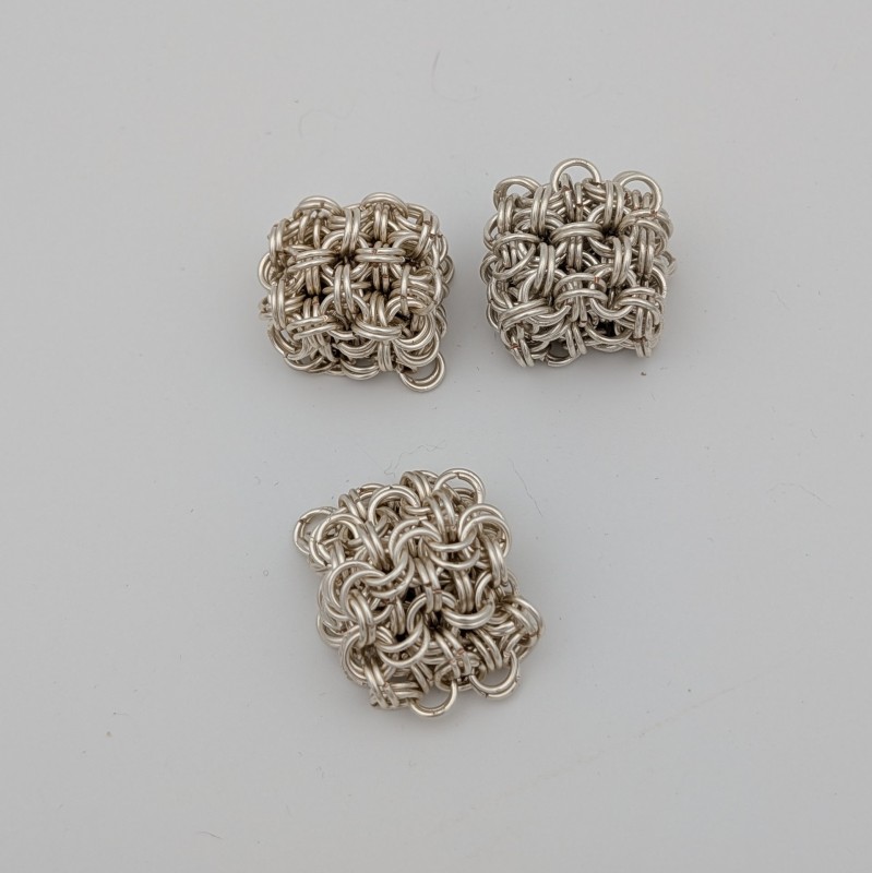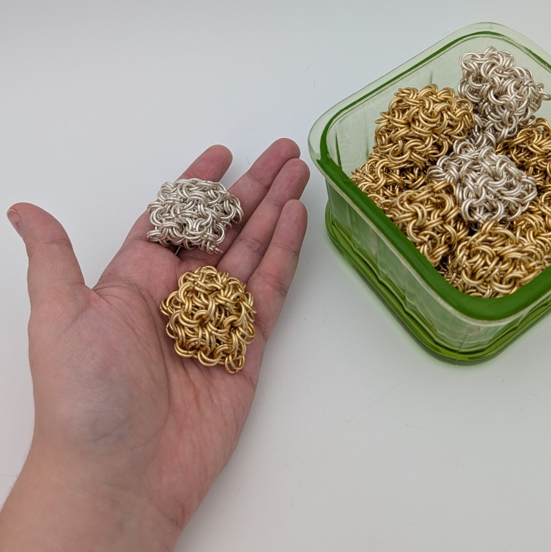 Made using the Japanese 8-in-2 wave pattern. The combination of the wire gauge and ring size allows the cube to feel like it can squish. Chainmail makes excellent sensory fidgets.