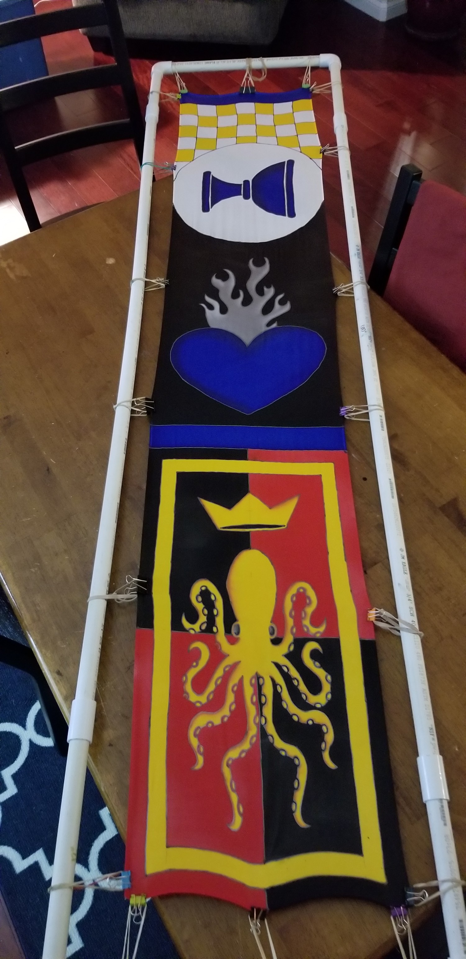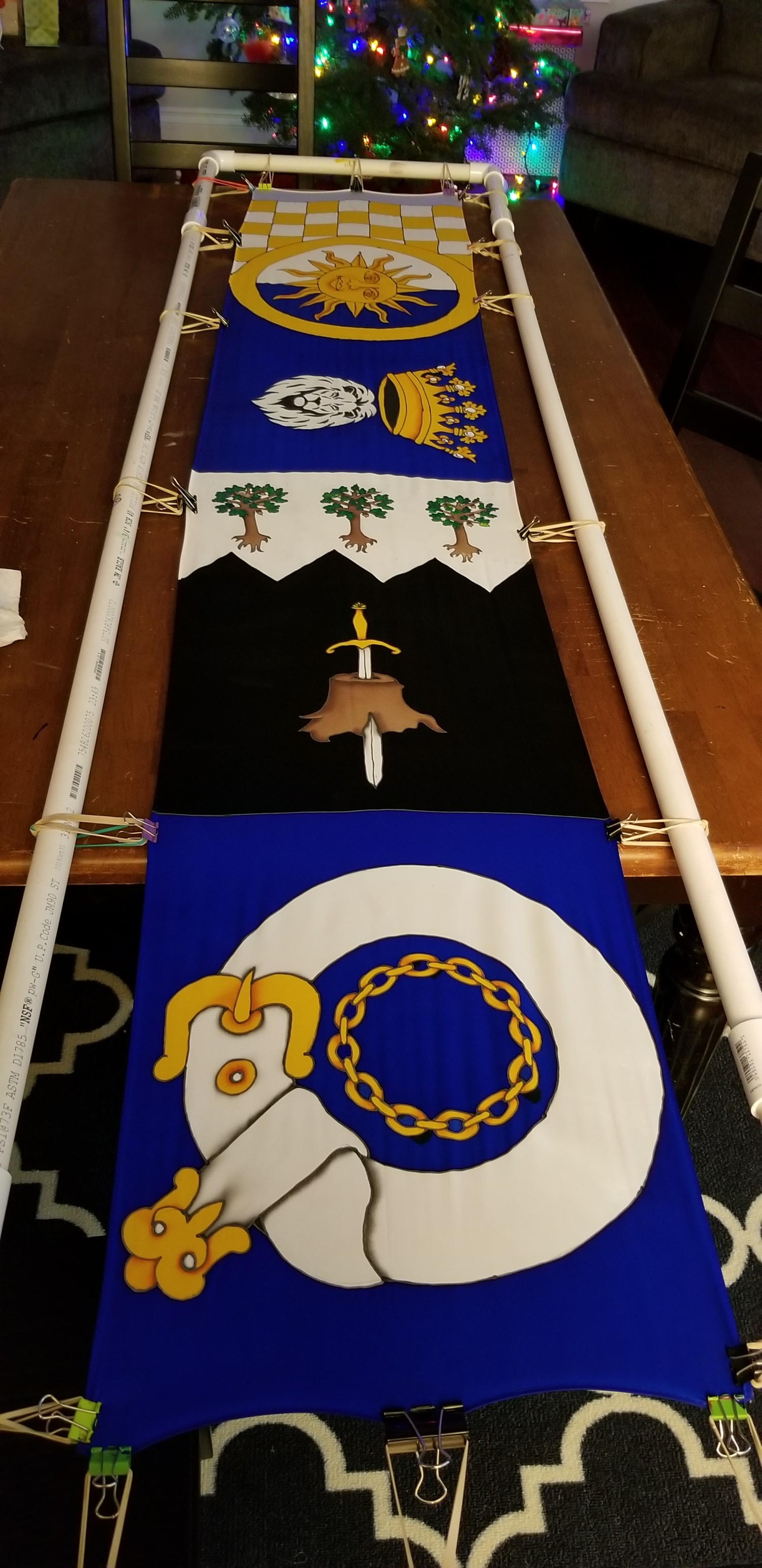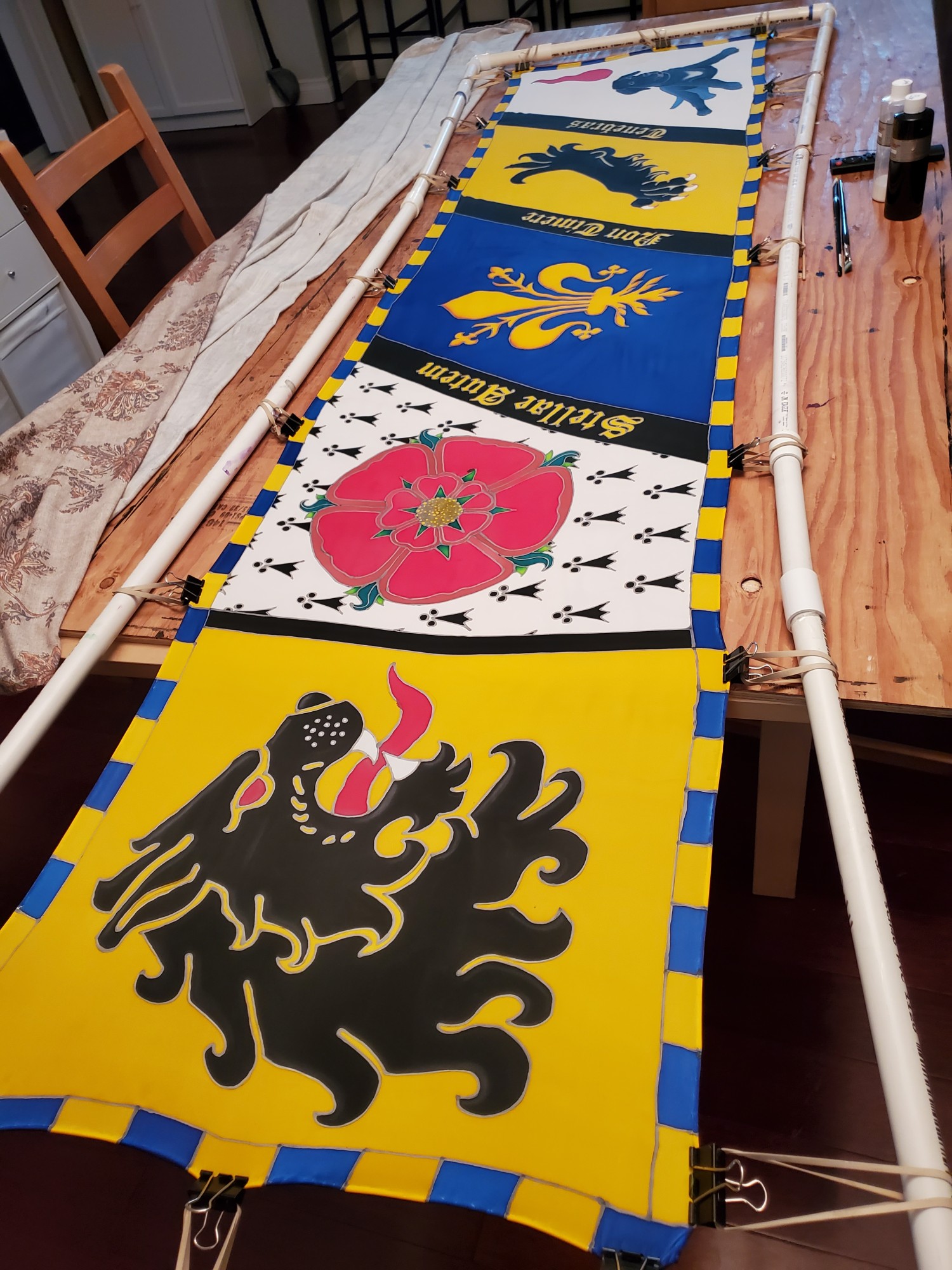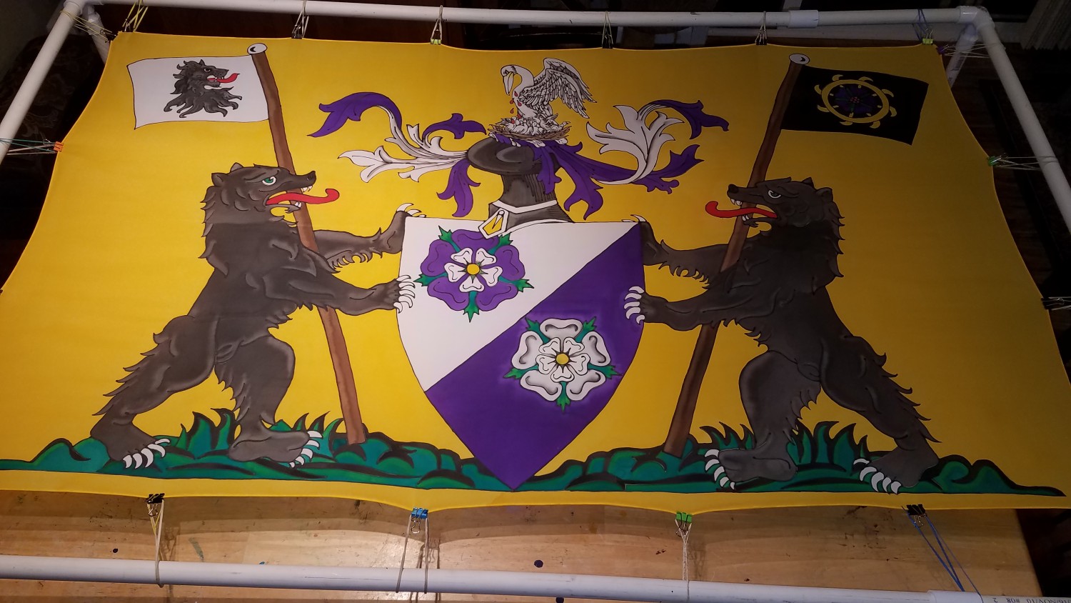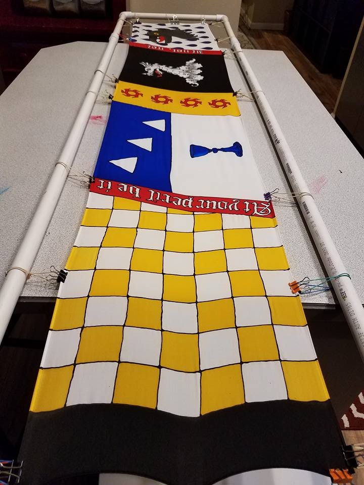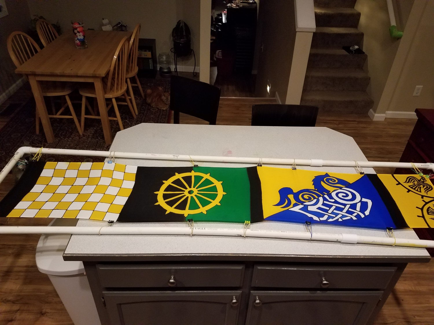 The banner is painted, heat treated and cotton cording ties are added to fly side.