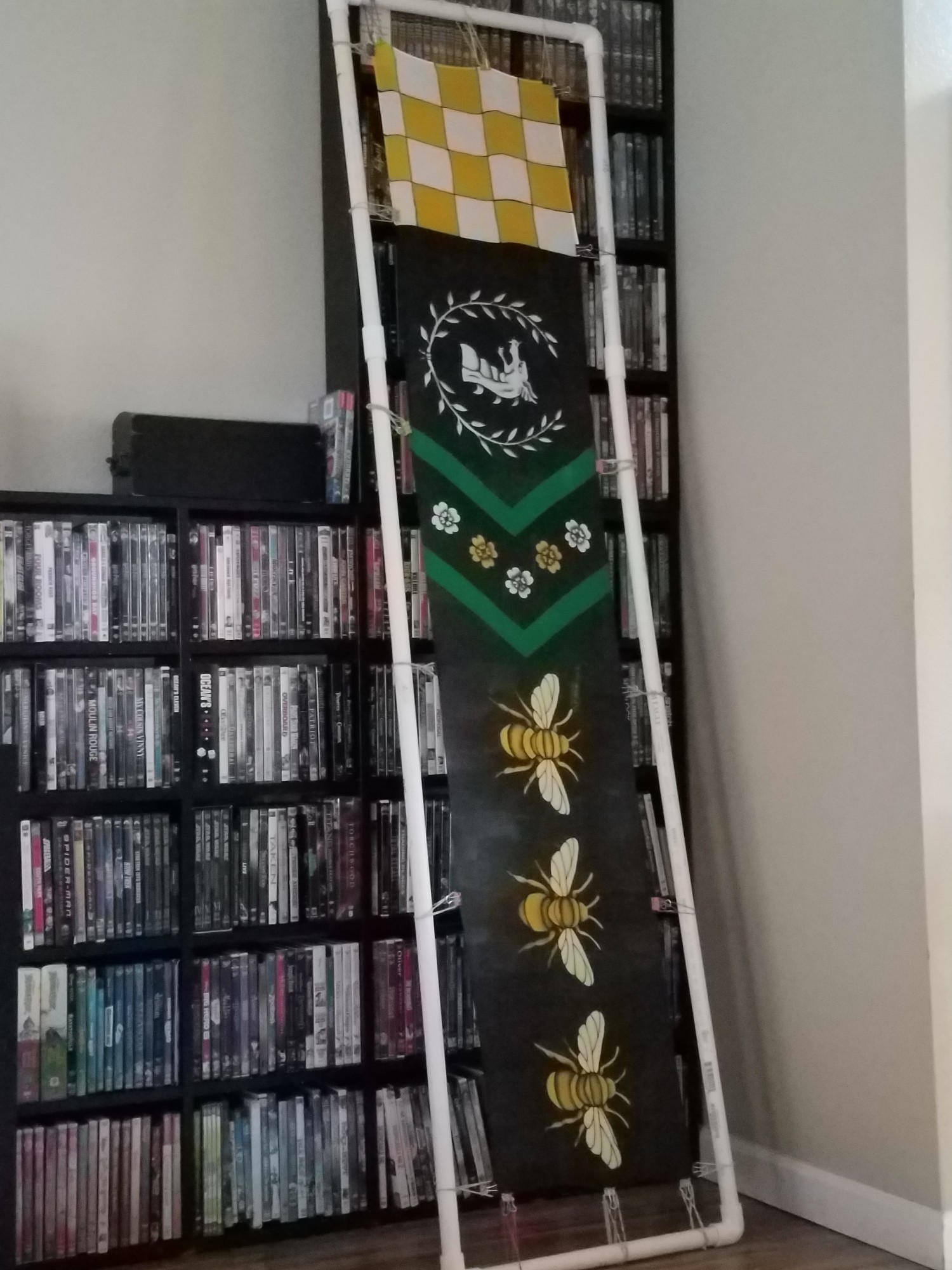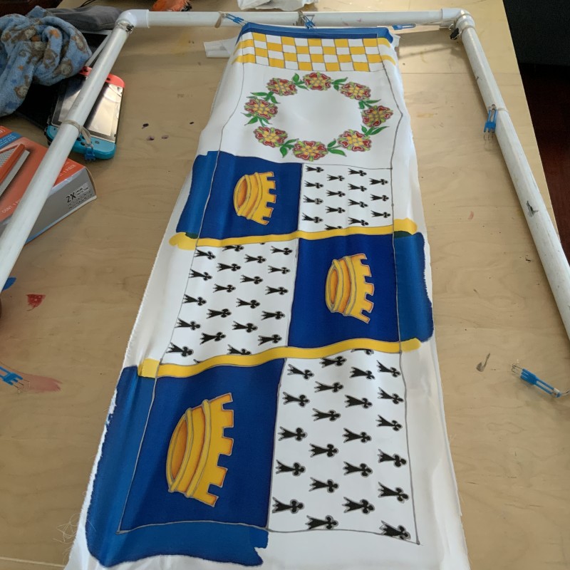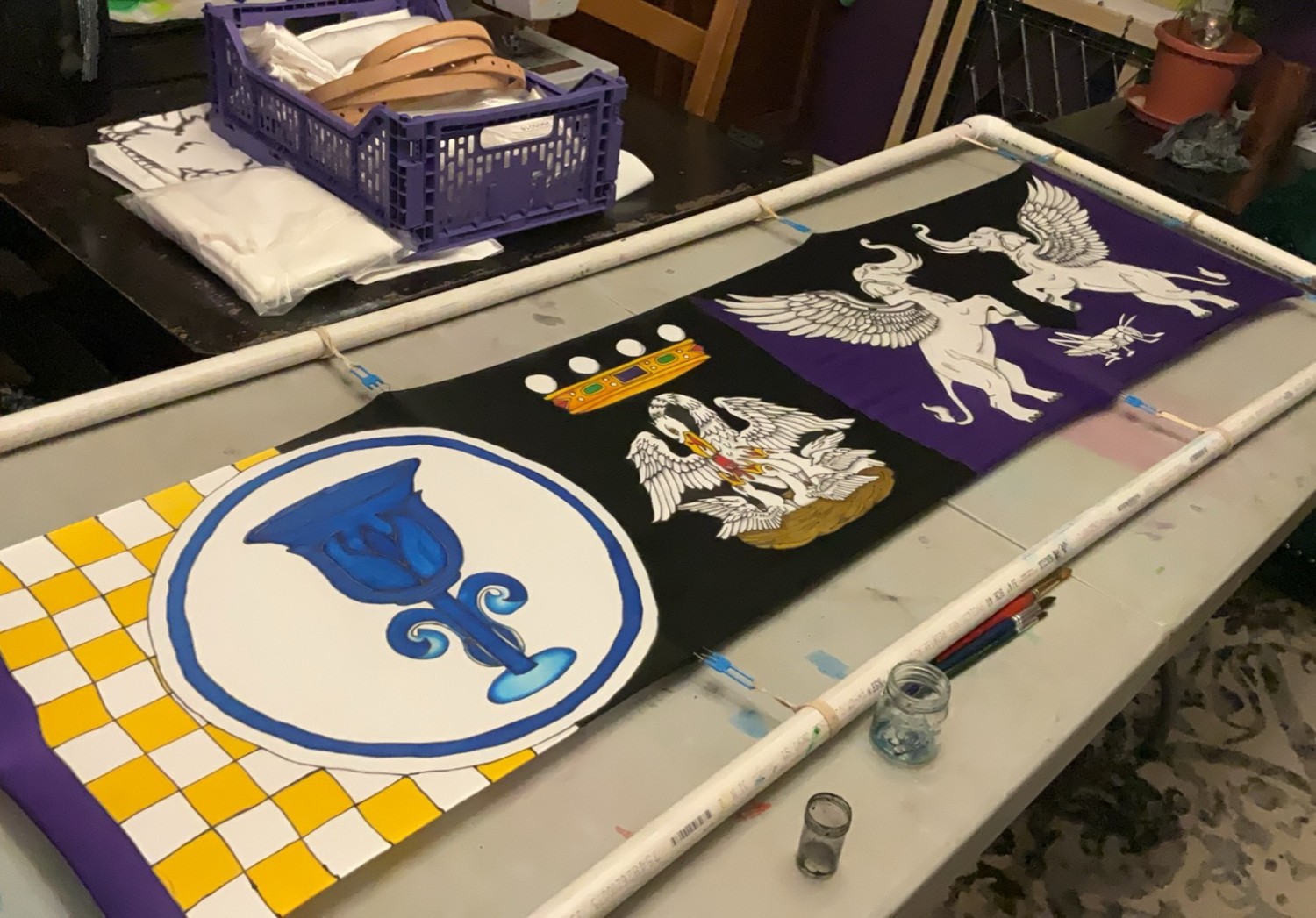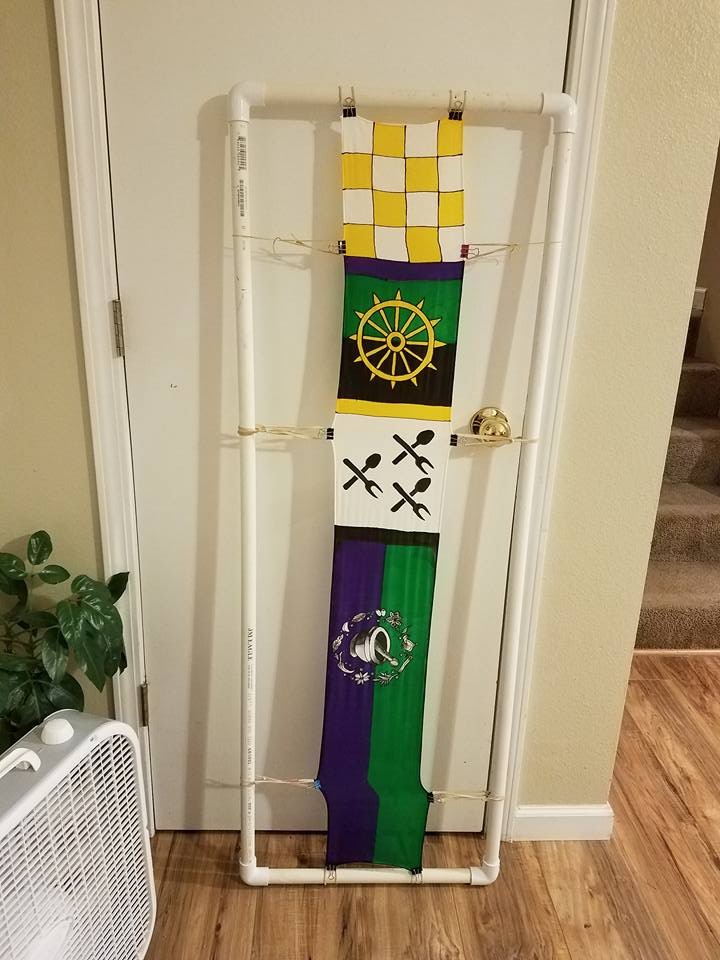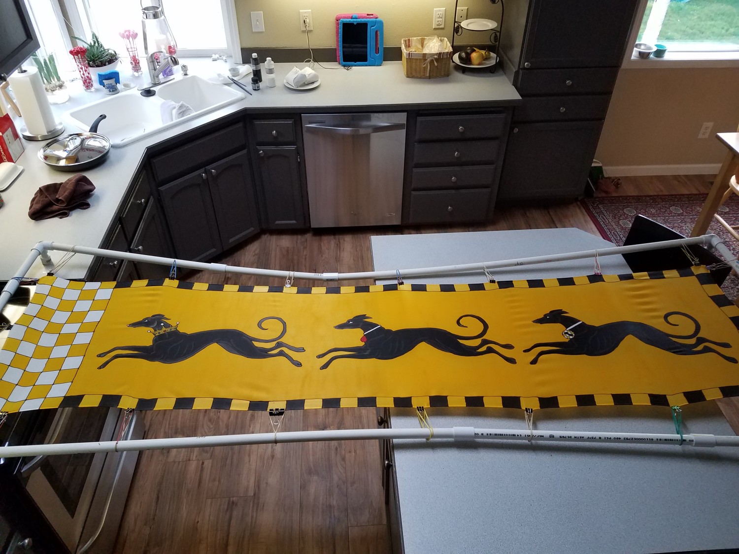 The banner is painted, heat treated and cotton cording ties are added to fly side.