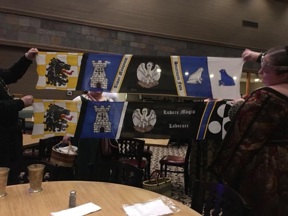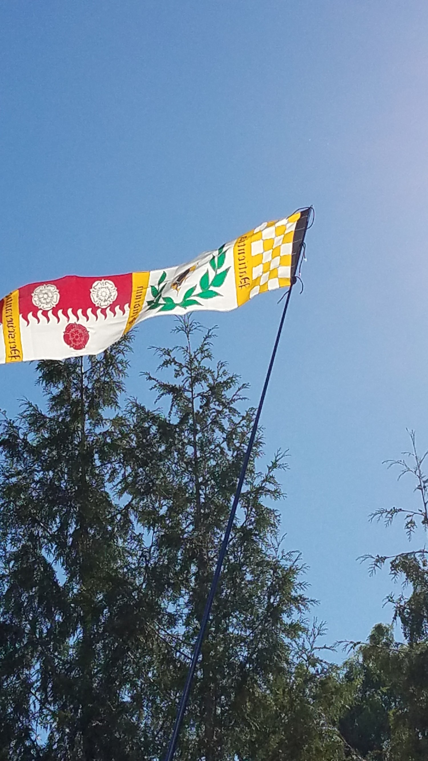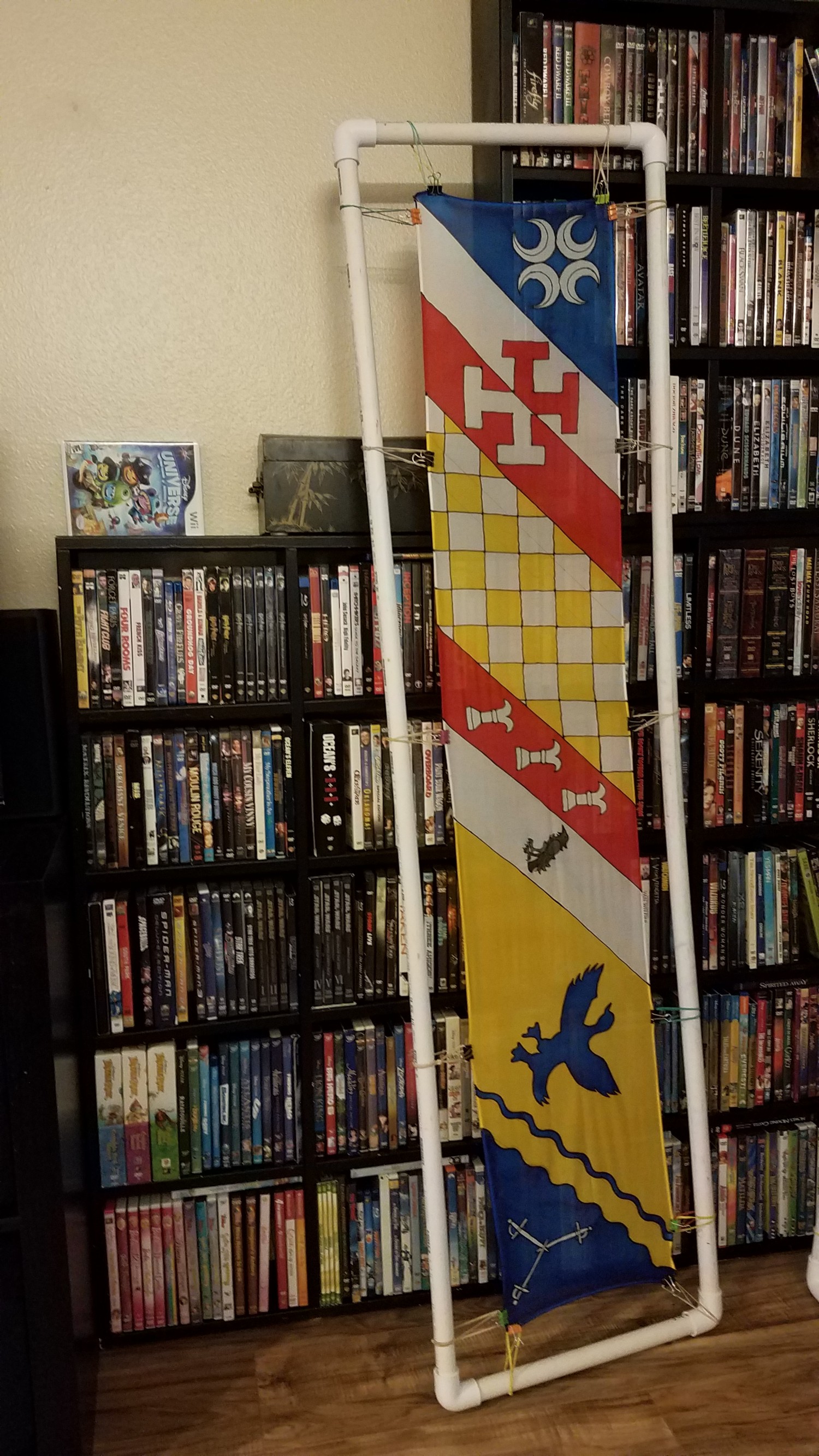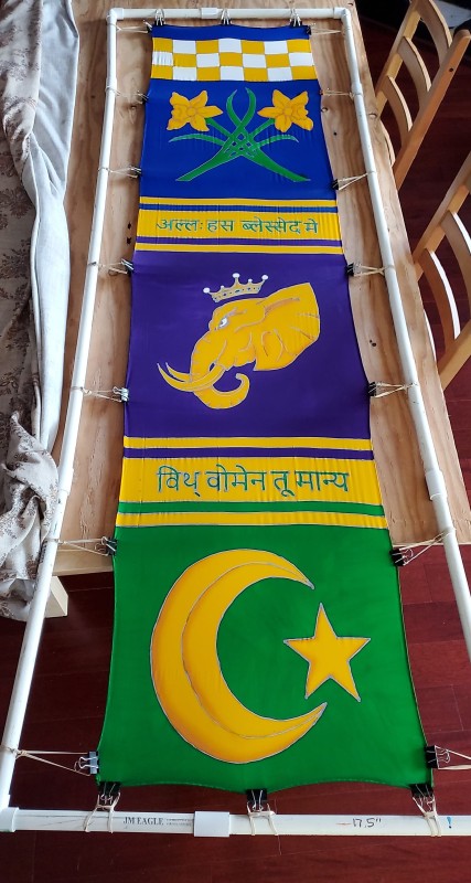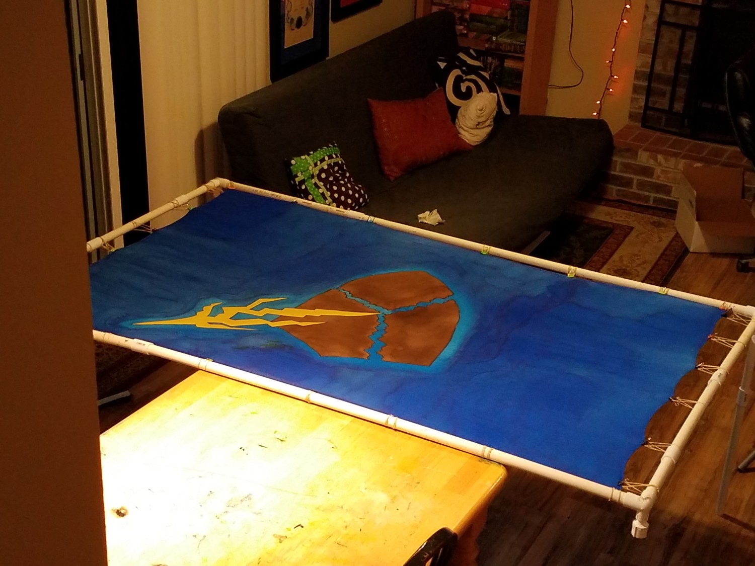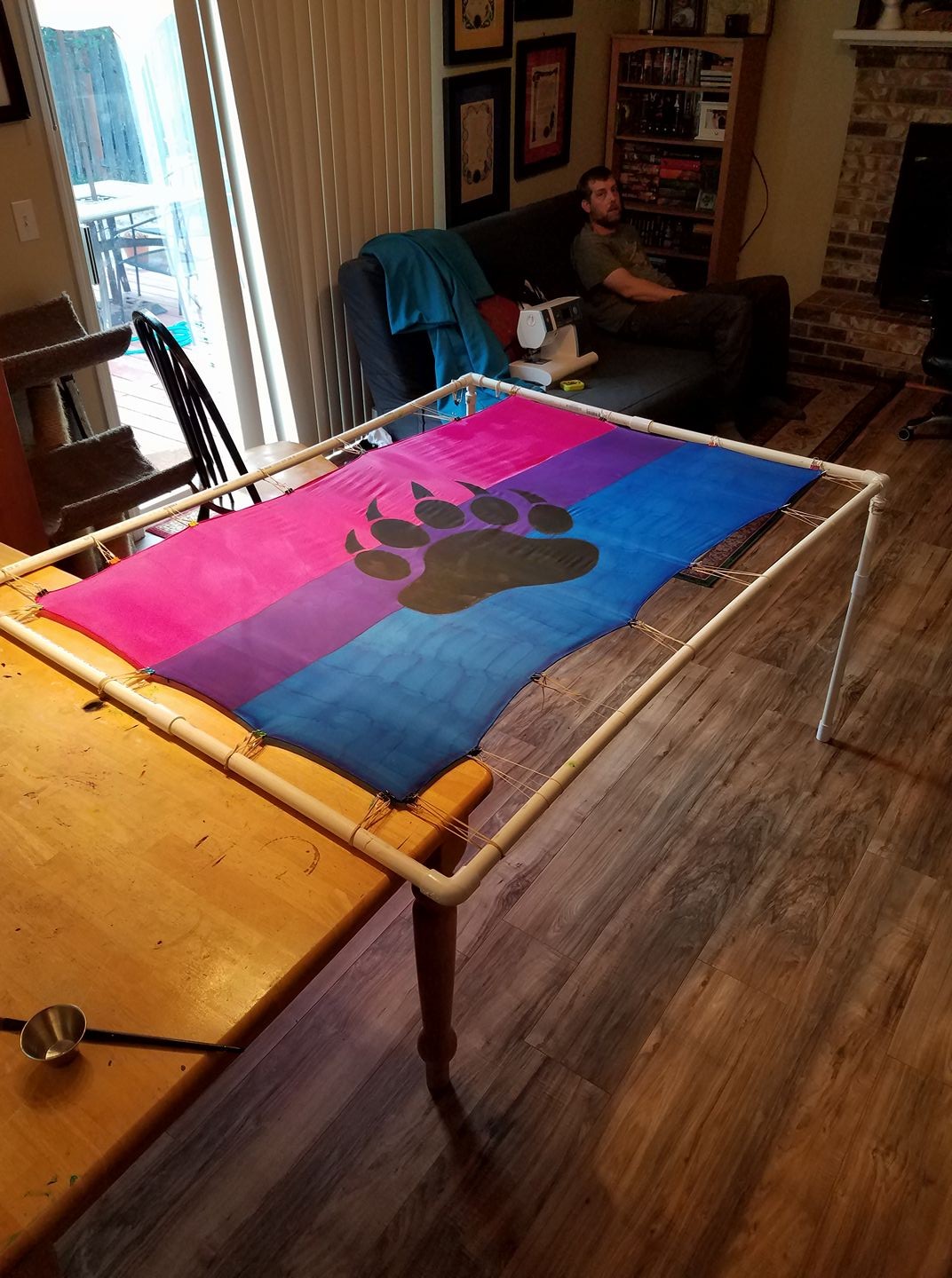 The banner is painted, heat treated and cotton cording ties are added to fly side.