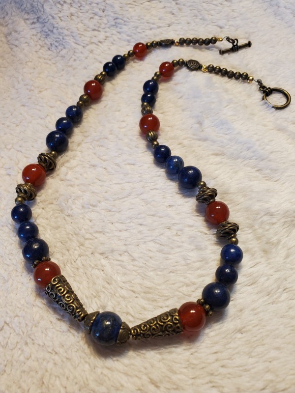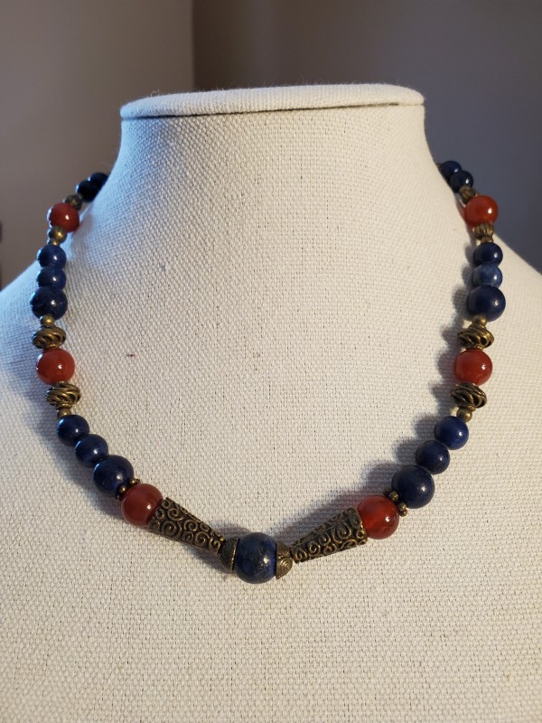 Egyptian style Lapis Lazuli Necklace, Carnelian in Bronze, 20" long