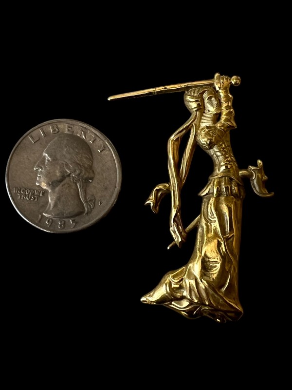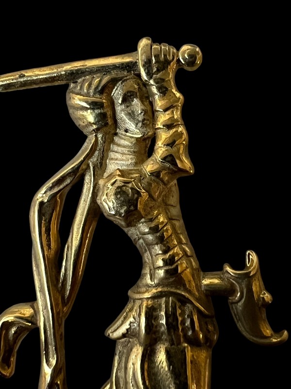 Drawn from the 15th century, this elegant lady fighter pin is bold, like the sword-wielding ladies we know!