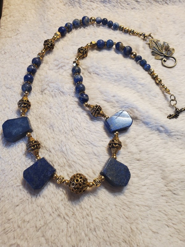 Etruscan style Lapis Lazuli Statement Necklace, 20" long, One of a Kind