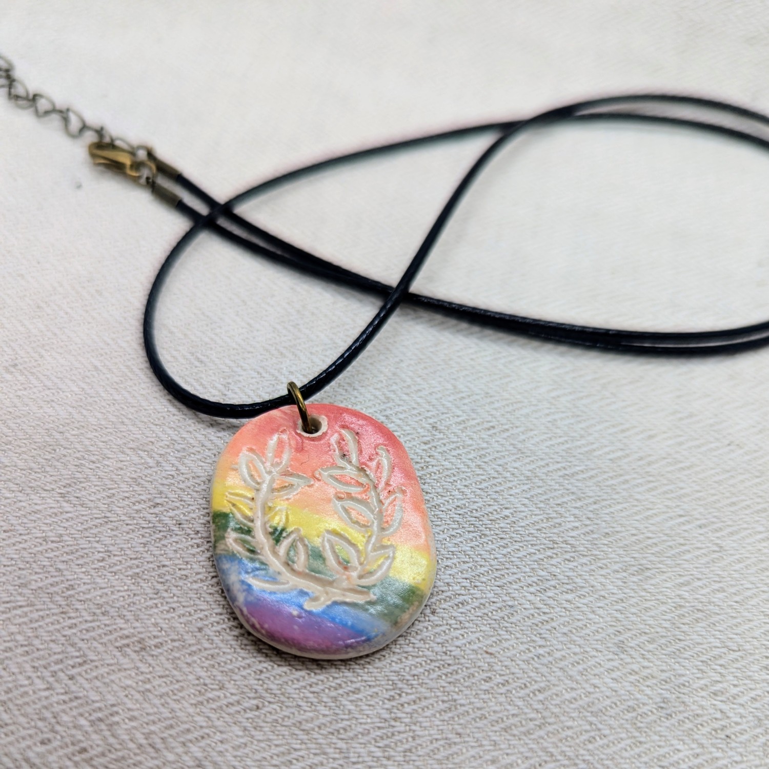 SCA Laurel medallion. Hand crafted from white stoneware clay on brass chain.