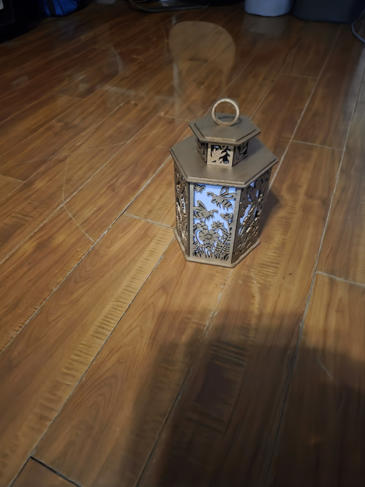 Wooden Lantern with blinking multi-colored LEDs powered by USB cable