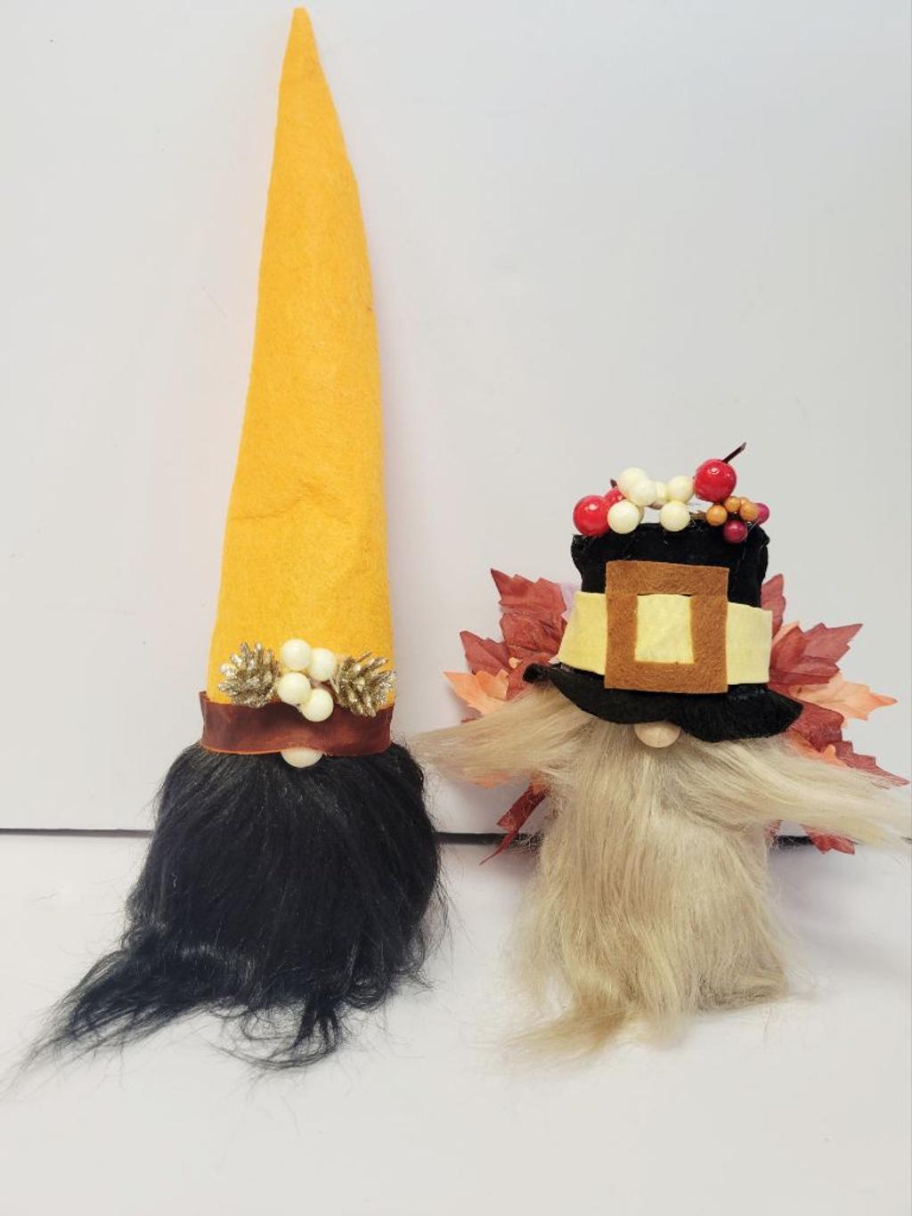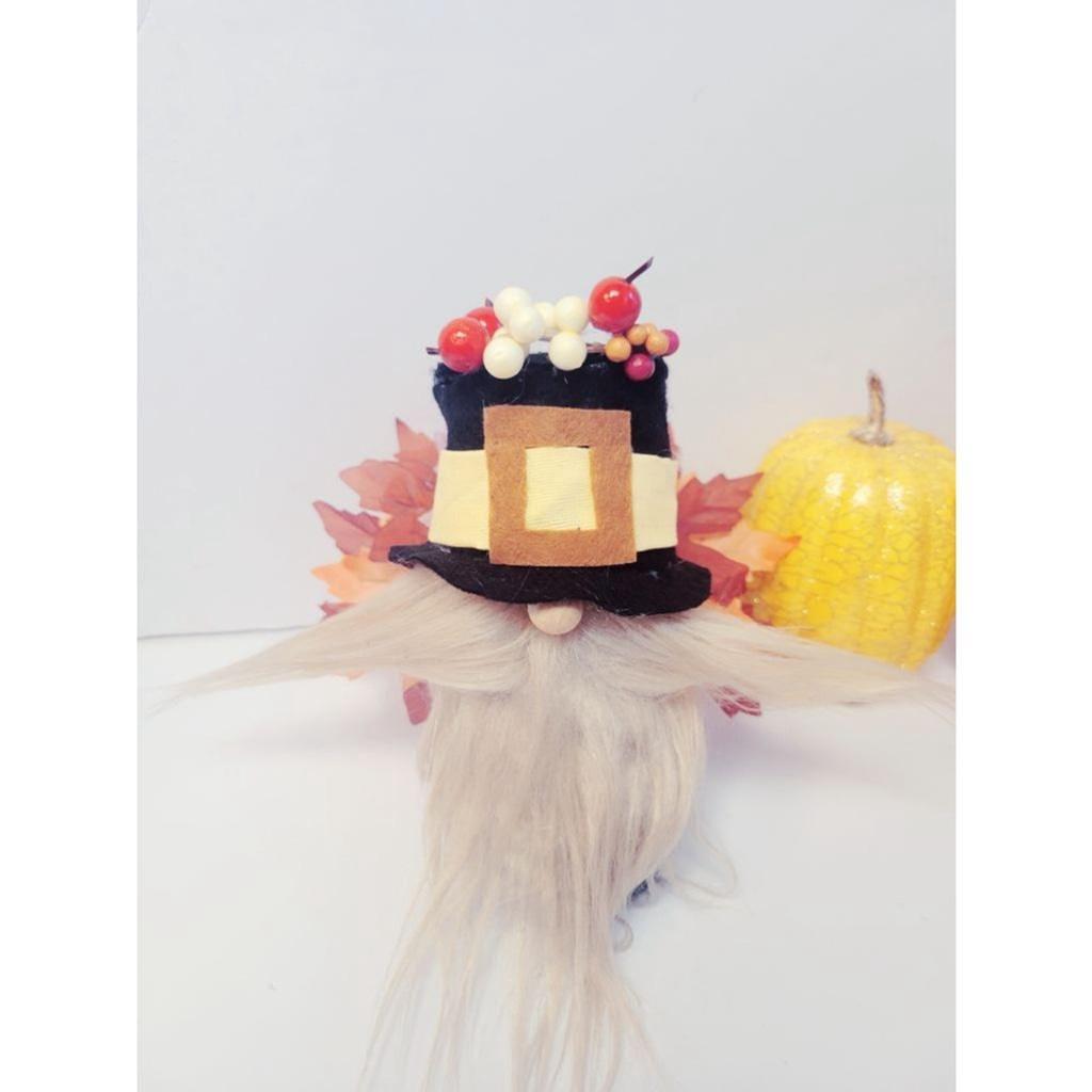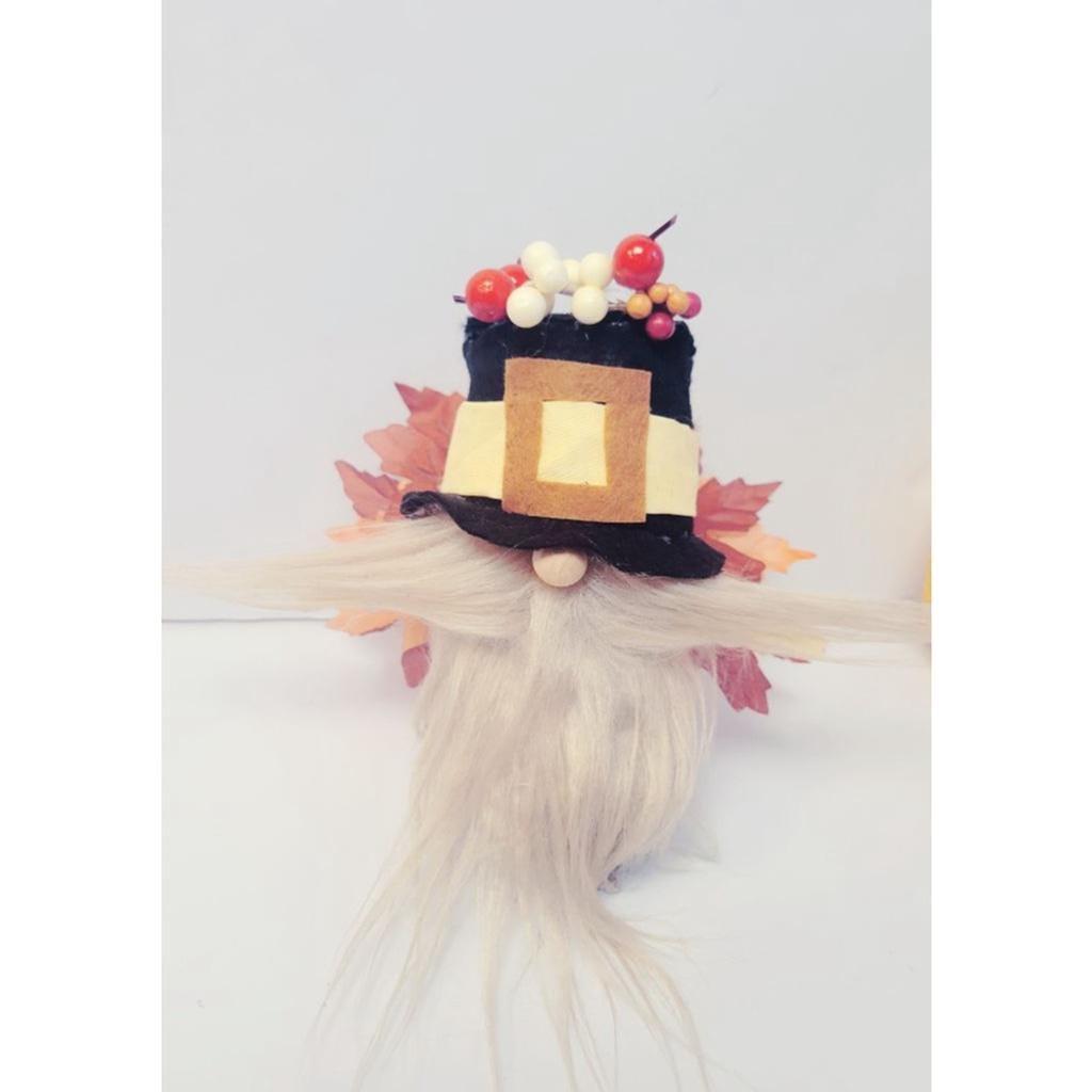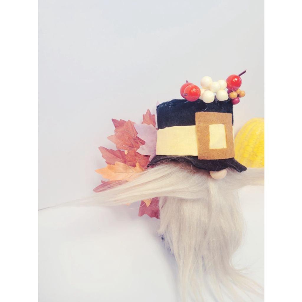 Meet Harvest Thornshadow, spirit of gratitude & spreading magical autumnal decoration for your home. He's handcrafted with love, this gnome is sure to brighten up your holiday decor. Made from new materials, filled with rice and premium poly-fil for stability, long blonde beard, wood nose, Pilgrim hat with foliage, and autumn colored leaves for his colorful tail. He measures approximately 7" tall.