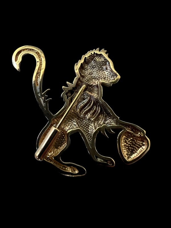 This pin is based Fiore's Segno, the lion figure which, entitled "audatia," stands for the fighting qualities of boldness and courage.