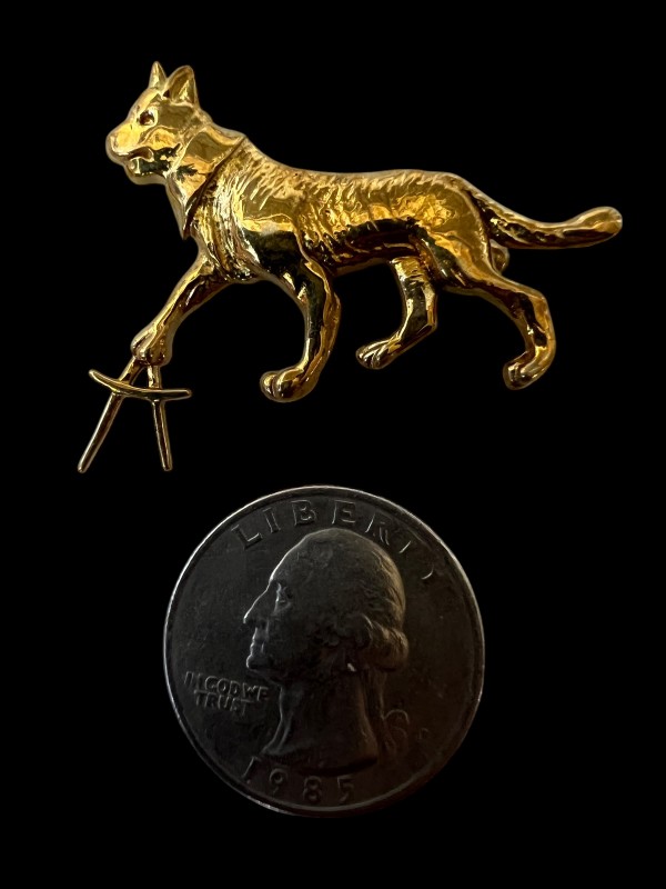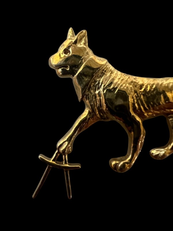 This pin is based Fiore's Segno, the lynx figure which, entitled "prudentia," stands for the fighting qualities of measure and judgment.
