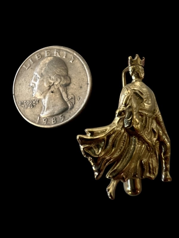 Made from high-detail bearing jewelers' brass, featuring a solid pin on the back side.
