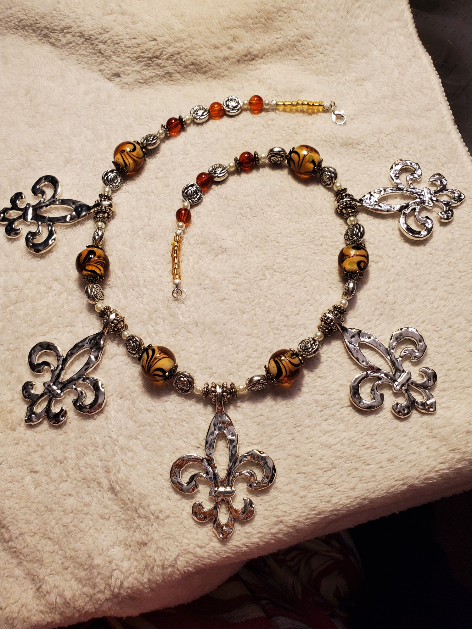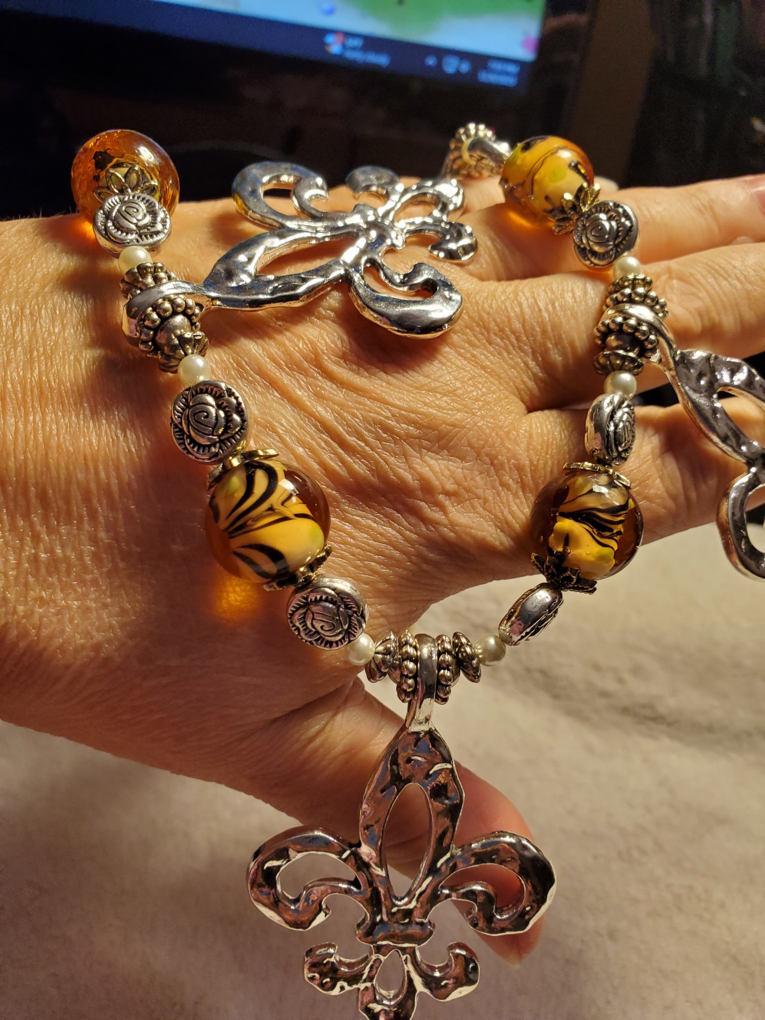 Fleur de Lis Lamp Work Amber Statement Necklace