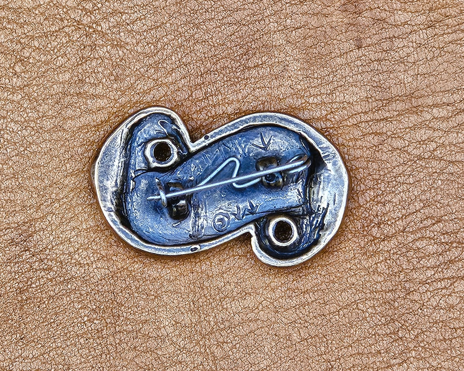 Description: Frankish S-brooch - 6th-7th century with hand-set carnelian cabochons and a stainless steel pin.