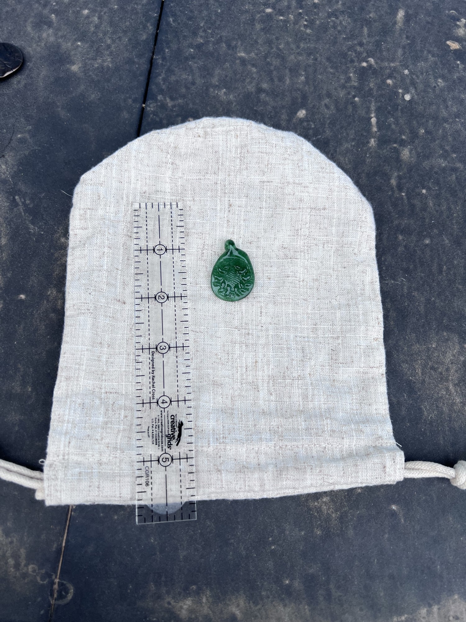 One stamped, glass, borosilicate pendant with a laurel on it.
