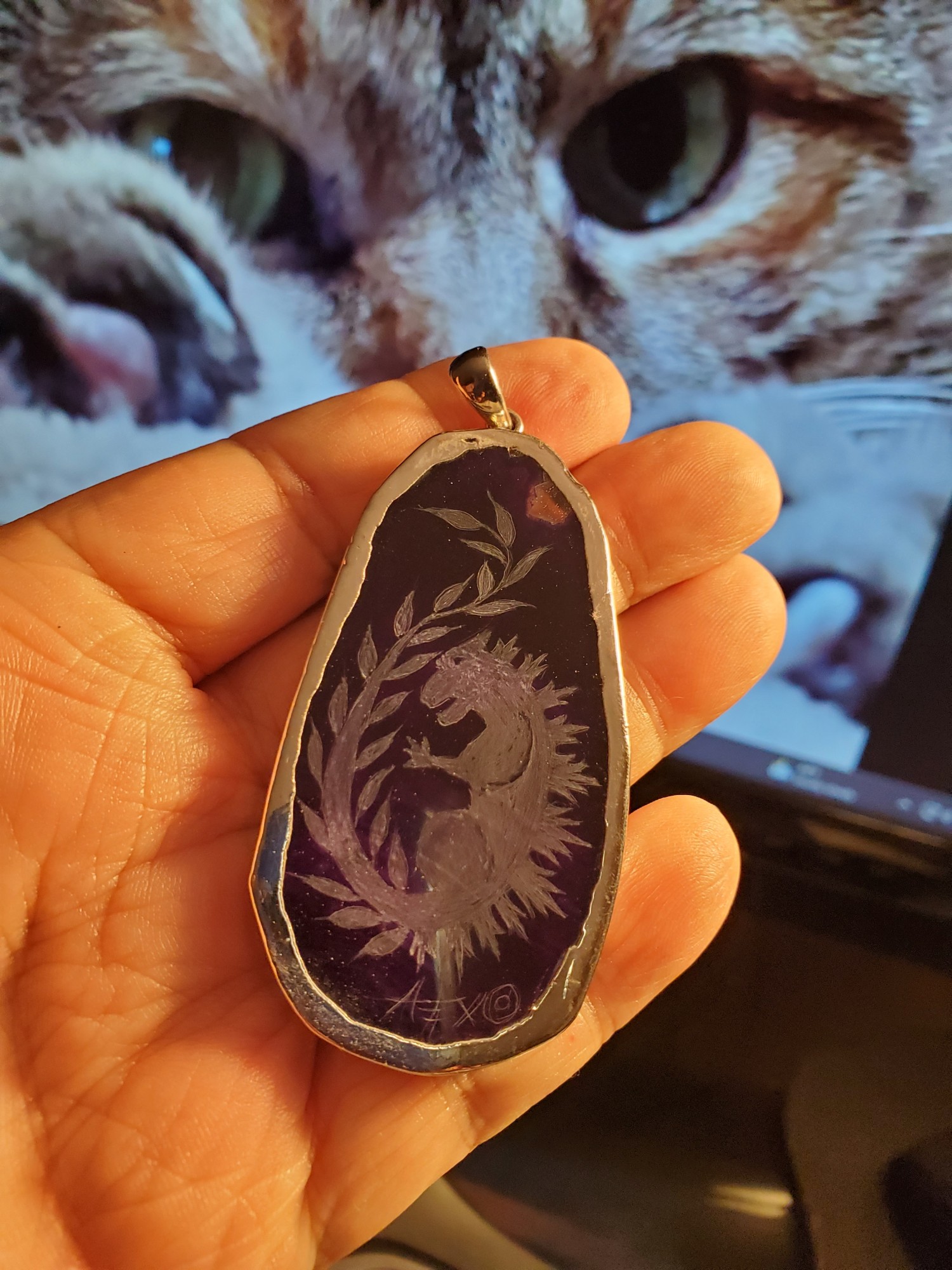 -hand carved intaglio style, One of a kind