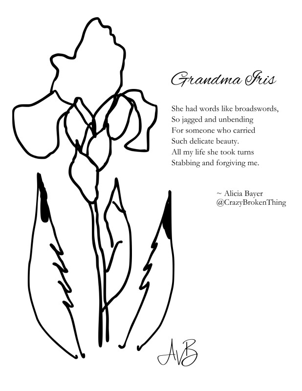 This is a printable, digital print of the original poem "Grandma Iris" and artwork from my poetry book, Flower Girls (Feminist Poems and Artwork). Poem and art by Alicia Bayer, artwork digitally drawn.