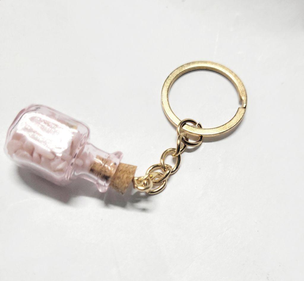 Natural pink opal gemstone crystal mini wish bottle keychain