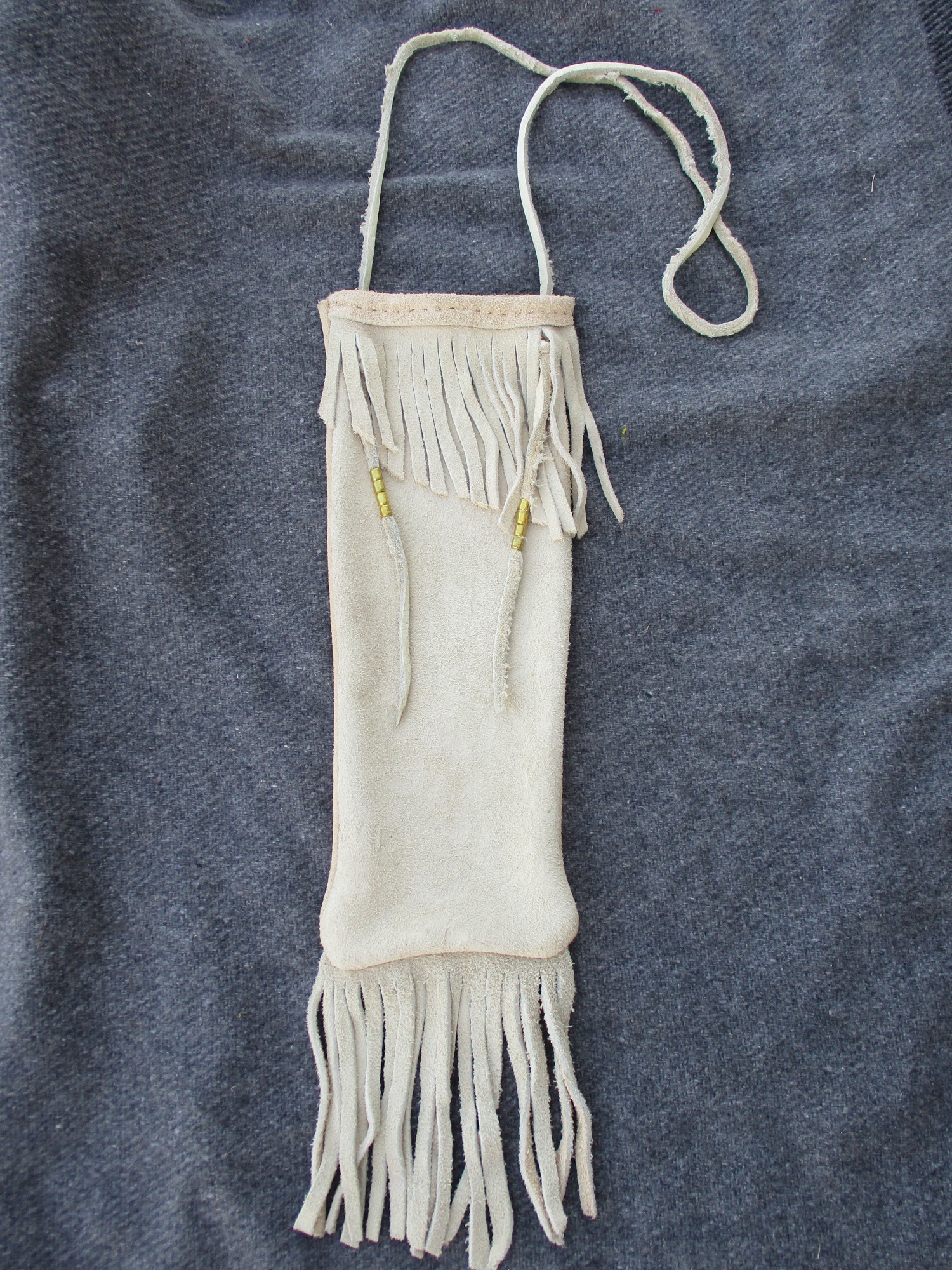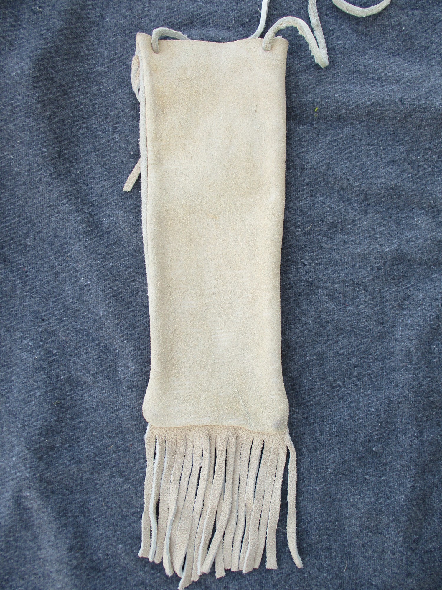 new, handmade bison leather pouch measures approx 5" wide by 14" long,