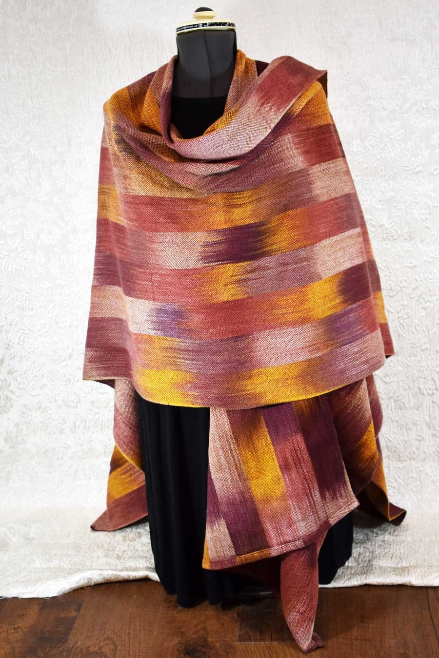 Here's a lovely desert themed ruana wrap for you. I hand dyed the cotton yarn in browns, rusts, and yellows, and then hand wove it on my floor loom. It is formed of 2 rectangular panels, sewn up the back. I have a few that I wove for myself years ago, and I wear them often for a nice wrap for chilly weather. Ruanas are particularly nice when traveling, since they can double as an extra layer in an airplane, or tossed over a bed or sleeping bag. Machine washable.