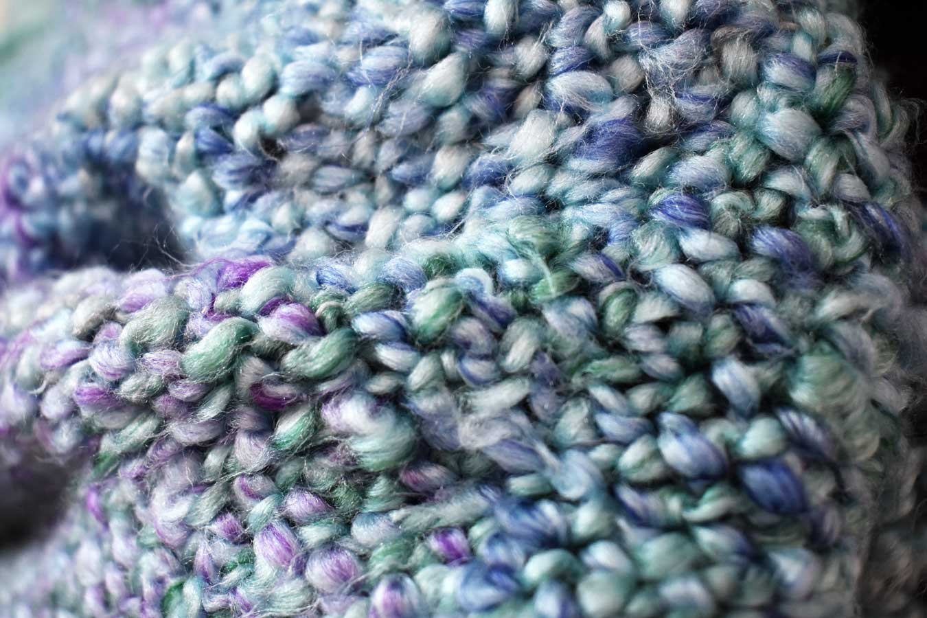 woven of Lion Brand Homespun Thick & Quick yarn, which is 88% Acrylic, 12% Polyester.