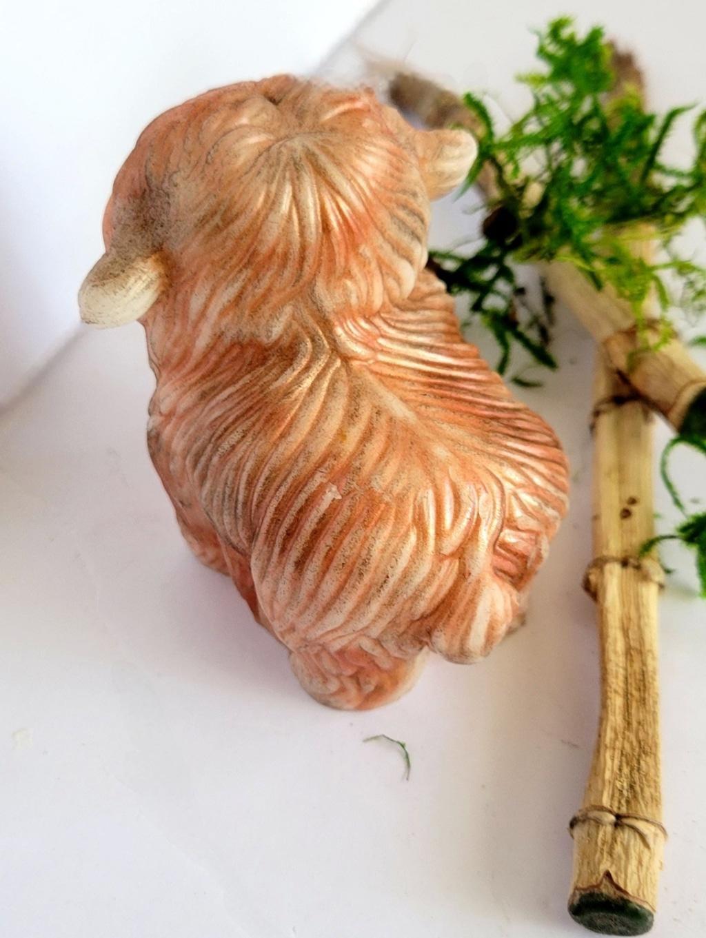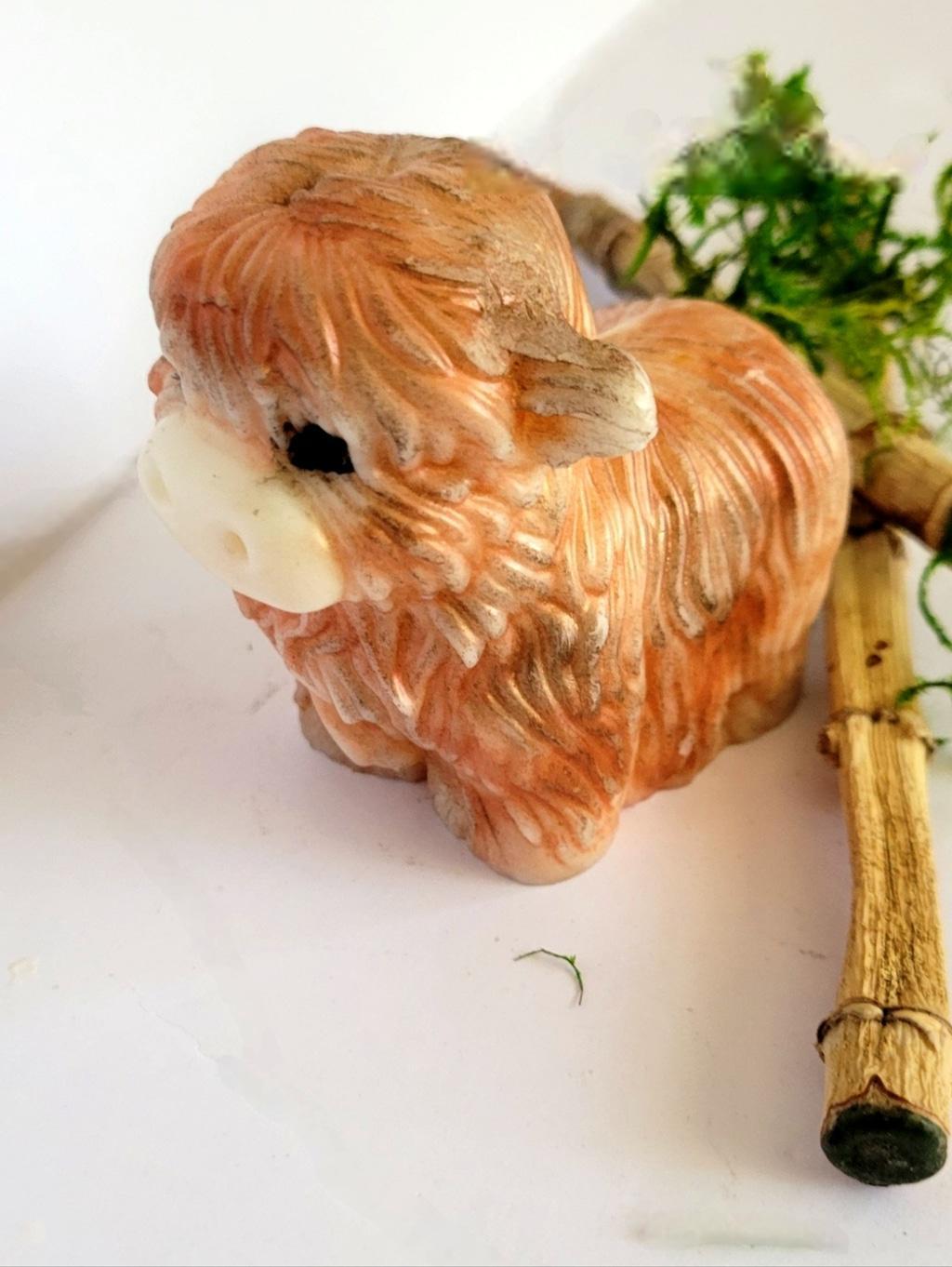 New Arrival from the Highlands! ?️ Meet the Mountain Mist Highland Calf. While his elders are out roaming the rugged peaks, this little one has found a cozy spot among the bamboo and moss. Hand-poured with pure soy wax and hand-burnished with a custom Ginger & Arctic Mist mica blend, he’s as "shaggy" as he is sweet. I even gave him a pair of soulful, hand-painted eyes so he can keep a close watch on your favorite shelf! ✨ Details: Type: Unscented Soy Wax Sculpture (No Wick) Scent: Clean & Pure (Unscented) Design: "The Wee One" – Limited Edition He’s the perfect rustic touch for any nature lover’s home. Who’s taking this little guardian home today?