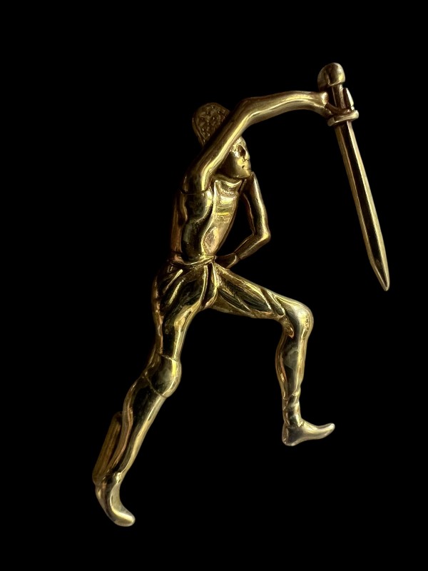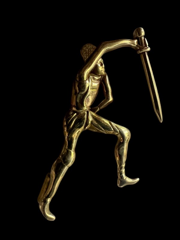 Made from high-detail bearing jewelers' brass, featuring a solid pin on the back side.