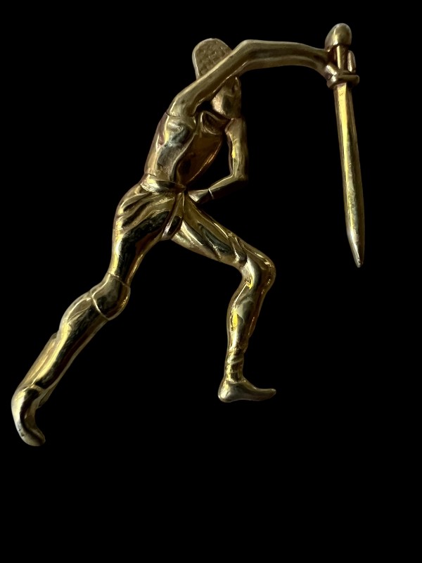 This pin celebrates Hans Leckuchner, the German master whose surviving treatise details the use of the "long knife" or messer, a weapon popular in 15th century German cities.