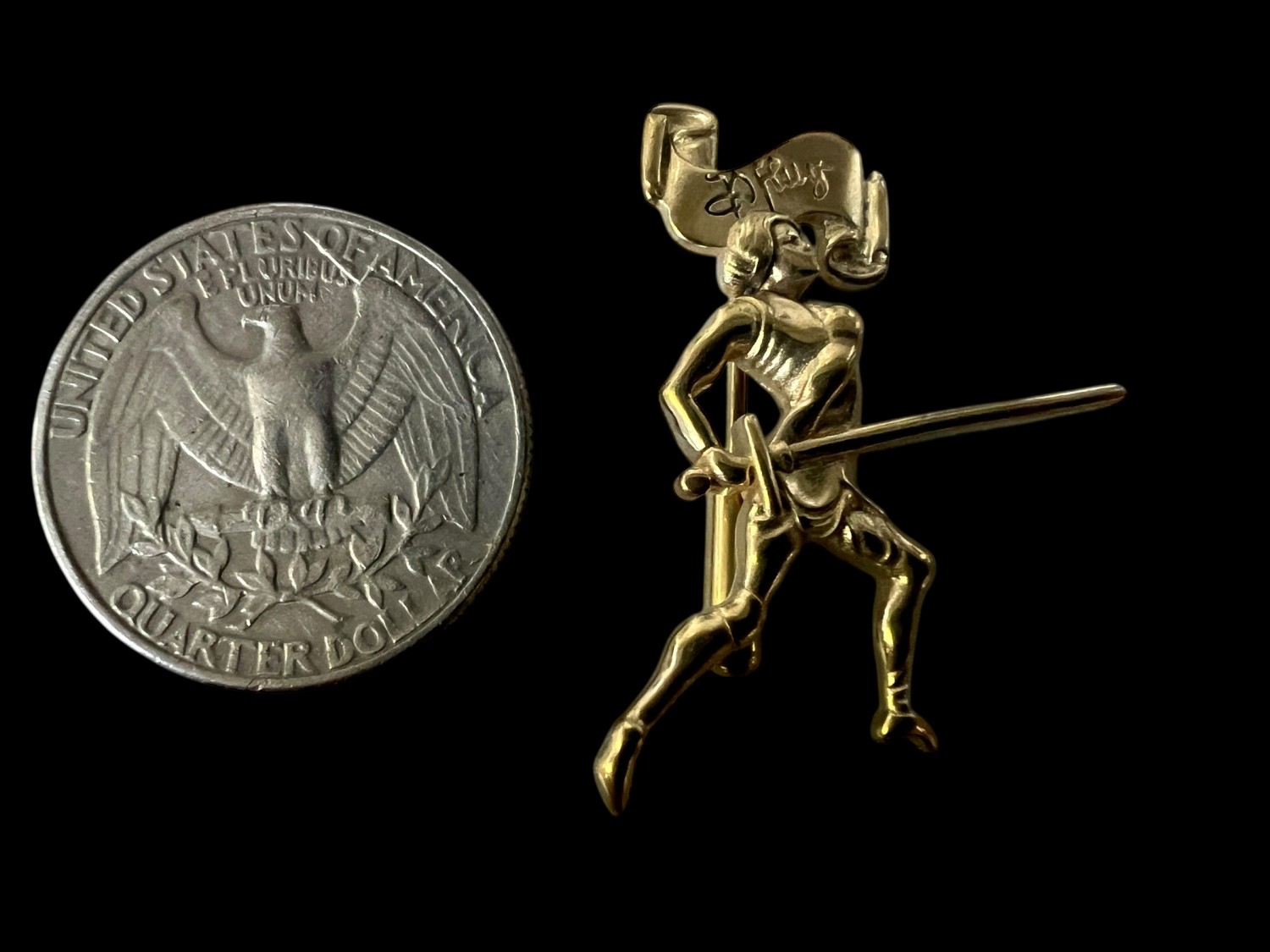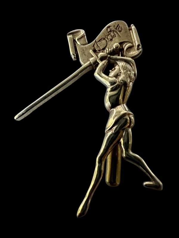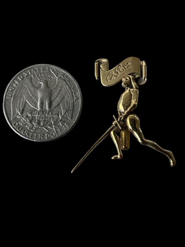 Made from high-detail bearing jewelers' brass, featuring a solid pin on the back side.