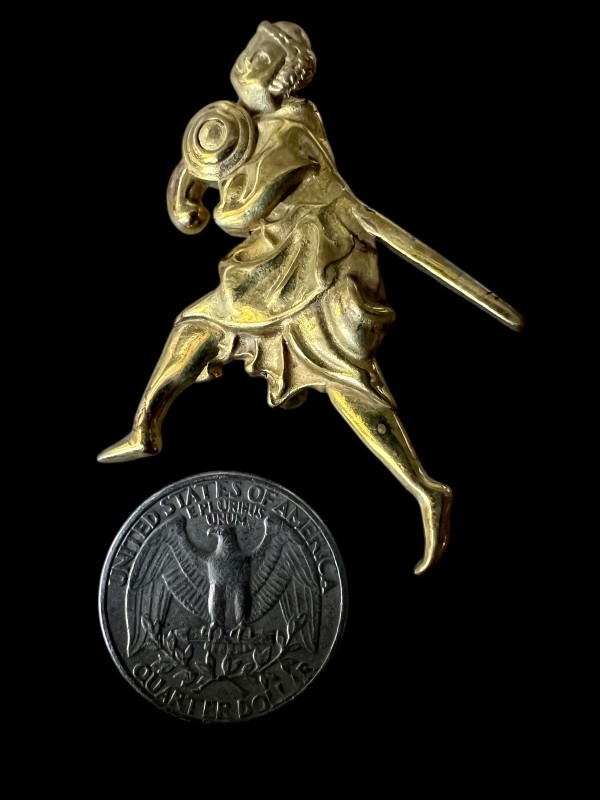 Made from high-detail bearing jewelers' brass, featuring a solid pin on the back side.