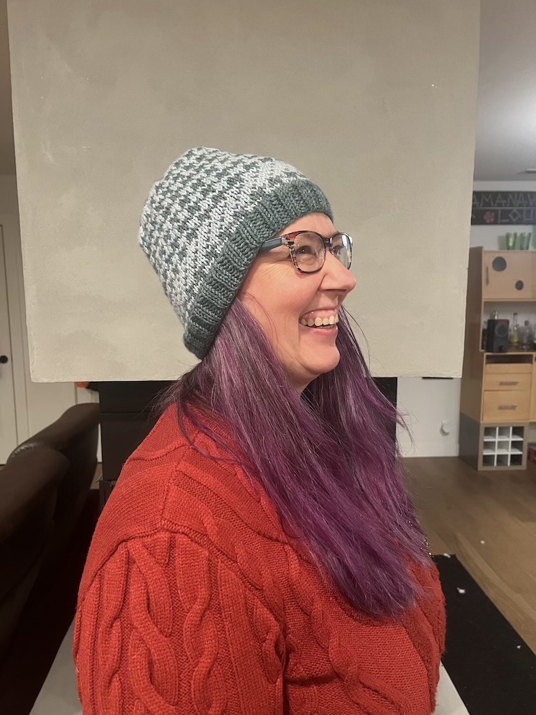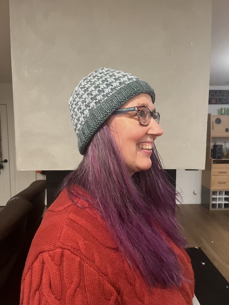 Knitted in 100% Merino Wool, this Hat measures 9 in x 9 in and has a circumference of 18 in un-stretched. The brim is long enough to fold up or wear flat.