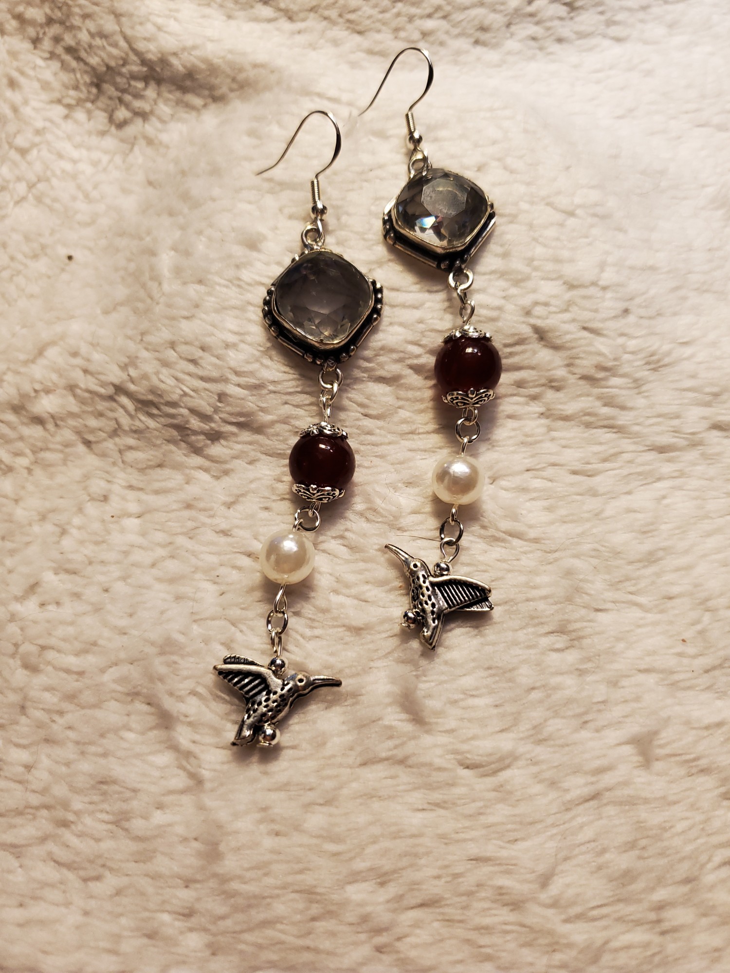 Hummingbird Rock Crystal Sterling Ear Rings